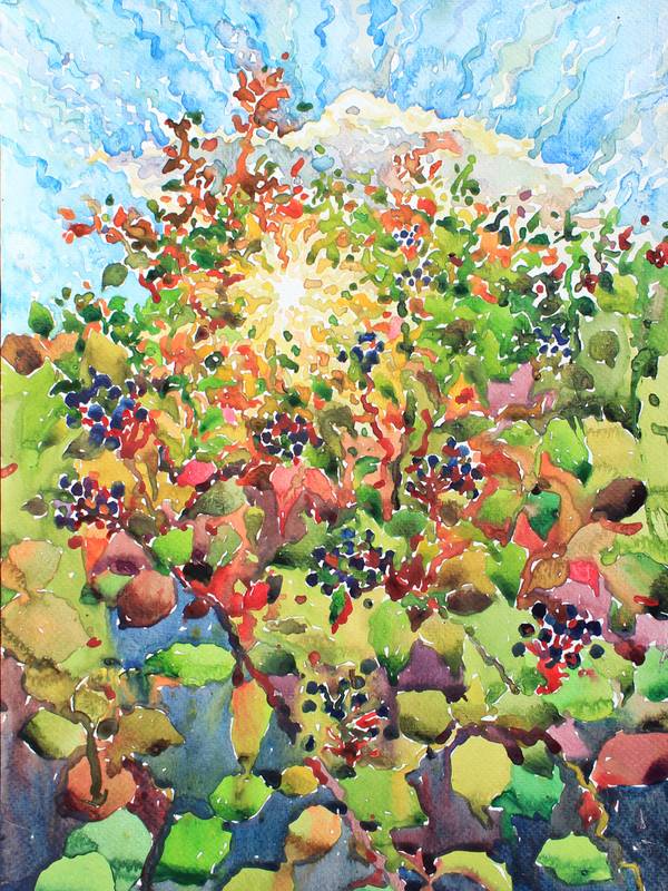 Materials: watercolor paints, watercolor paper, watercolor brush.