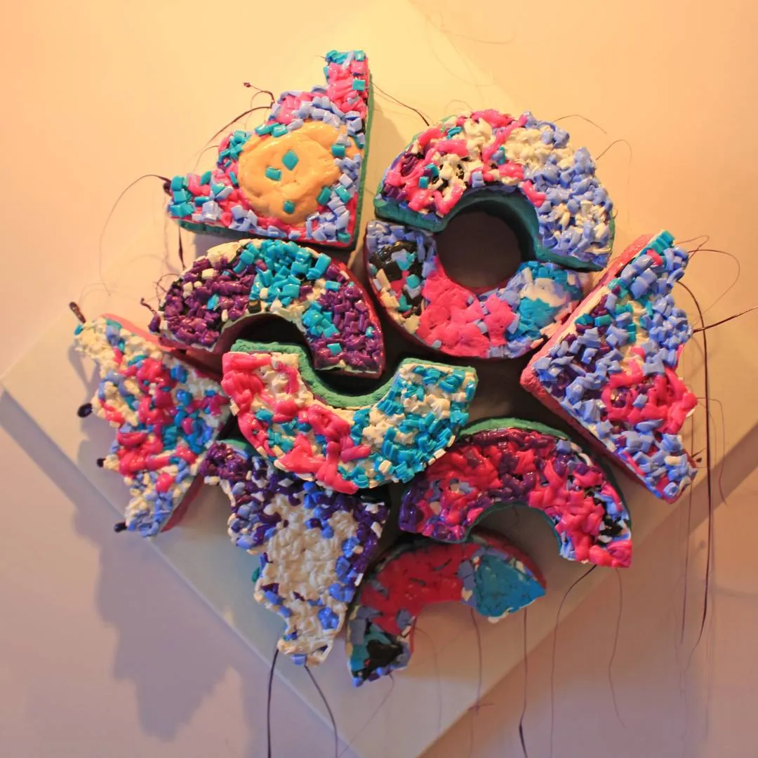 Materials: artistic slime paint, acrylic, pressed paper, plastic, stretched canvas.