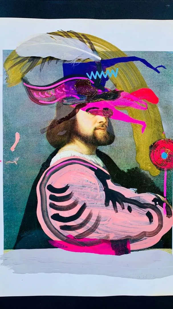Mixed media acrylics, gold, sprinkles, watercolour, glue, silkscreen, glitter and magic beans. 2024 cannot get any more fresh