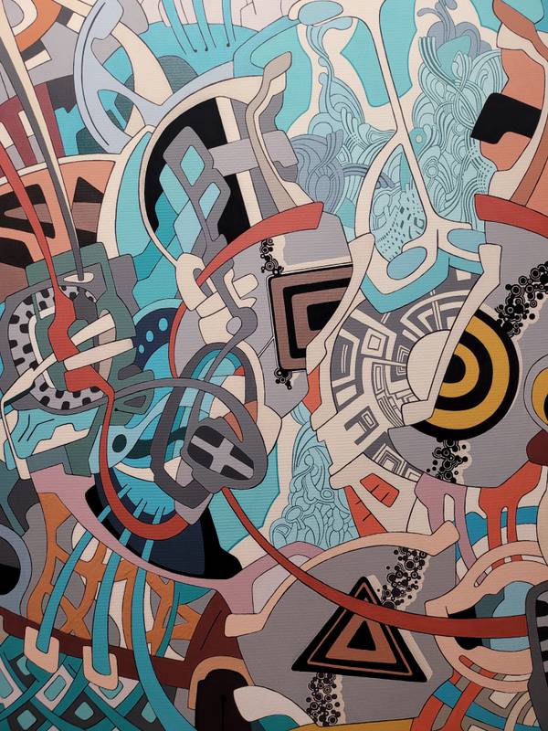 Eugene's paintings aren't just compositions of colour - they are movements. They seemed to shift before your eyes, pulling you in, disorienting in the best way. His secret? ‘-black’ - a rare Japanese paint so dense that it absorbs nearly all light, creating an illusion of infinite depth. He orders it from a master in Japan, layering it alongside vibrant colour, bending space itself on the canvas. When you stand before his work, it’ as if you’ falling into the painting, moving between its layers, losing balance for just a second.