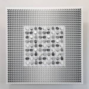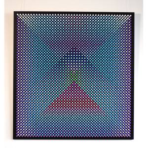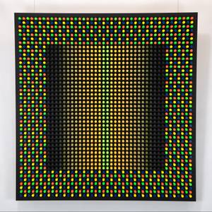 Nazar Symotiuk is a Ukrainian sculptor whose focus on Op-art has opened up a wide variety of artistic concepts. When creating his voluminous compositions, he combines the minimalism of simple geometric shapes and color contrast to enhance the emotional perception of the viewer. Symotiuk's contemporary pieces are made using wood and acrylics. New perspectives of his compositions can be found from varying angles, as if searching for the secret that lies within.
