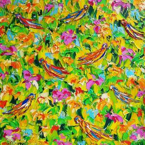 In 1999, she moved to the USA and started her career in painting in the year 2000, at first, using brushes, with no texture, but creating very colorful artworks to bring joy to people discovering her paintings, always aiming at depicting her native country.