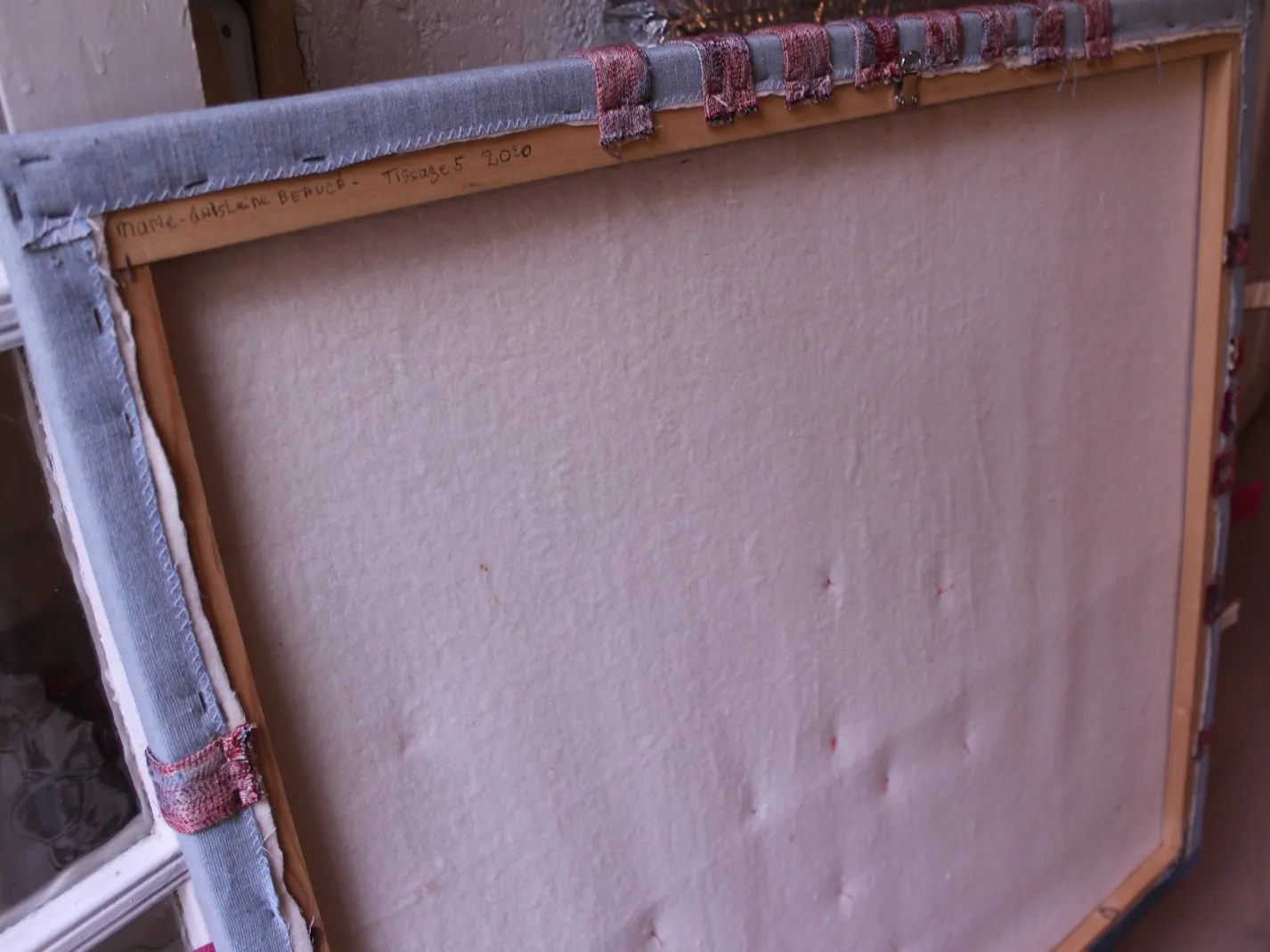 Marie-Ghislaine Beaucé, a French artist currently active in London, has been interested in textile fibers since her teenage years. At the Ecole Nationale des Beaux-Arts in Nantes and during the years she spent working in soft furnishing design and manufacture, she understood the artistic potential of textile fibres, the absolute protagonists of her artworks. In the pieces made since 2015, the textile fibres of varied textures, colours and materials, intertwine and overlap each other, creating an abstract and purely geometric lattice. By combining different textiles and playing on contrasts, Marie-Ghislaine highlights and enhances the peculiarities of each material, passing from the sheen of silk and velvet to the opacity of natural cotton or linen. The two dimensionality of fabrics often joins the three dimensionality of padded tubes, making her artworks a hybrid between patchwork and plasticism.