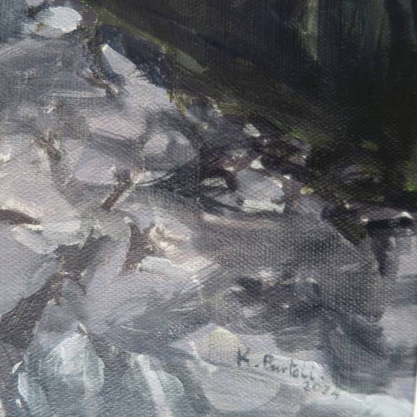 L’univers pictural de Fairfeld Porter l’inspire dans la recherche du motif et de la composition de ses peintures. Son geste est dans la lignée de celui de peintres néo expressionnistes allemands des années 80, caractérisé par une franche liberté d’expression. Le médium peinture ne s’éfface pas derrière le motif. Il est garant d’un choix subjectif qu’elle établit face à son modèle.