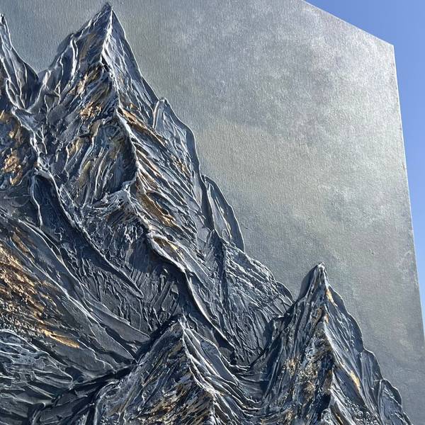 Texture paste on canvas gives the mountains a palpable depth and relief.