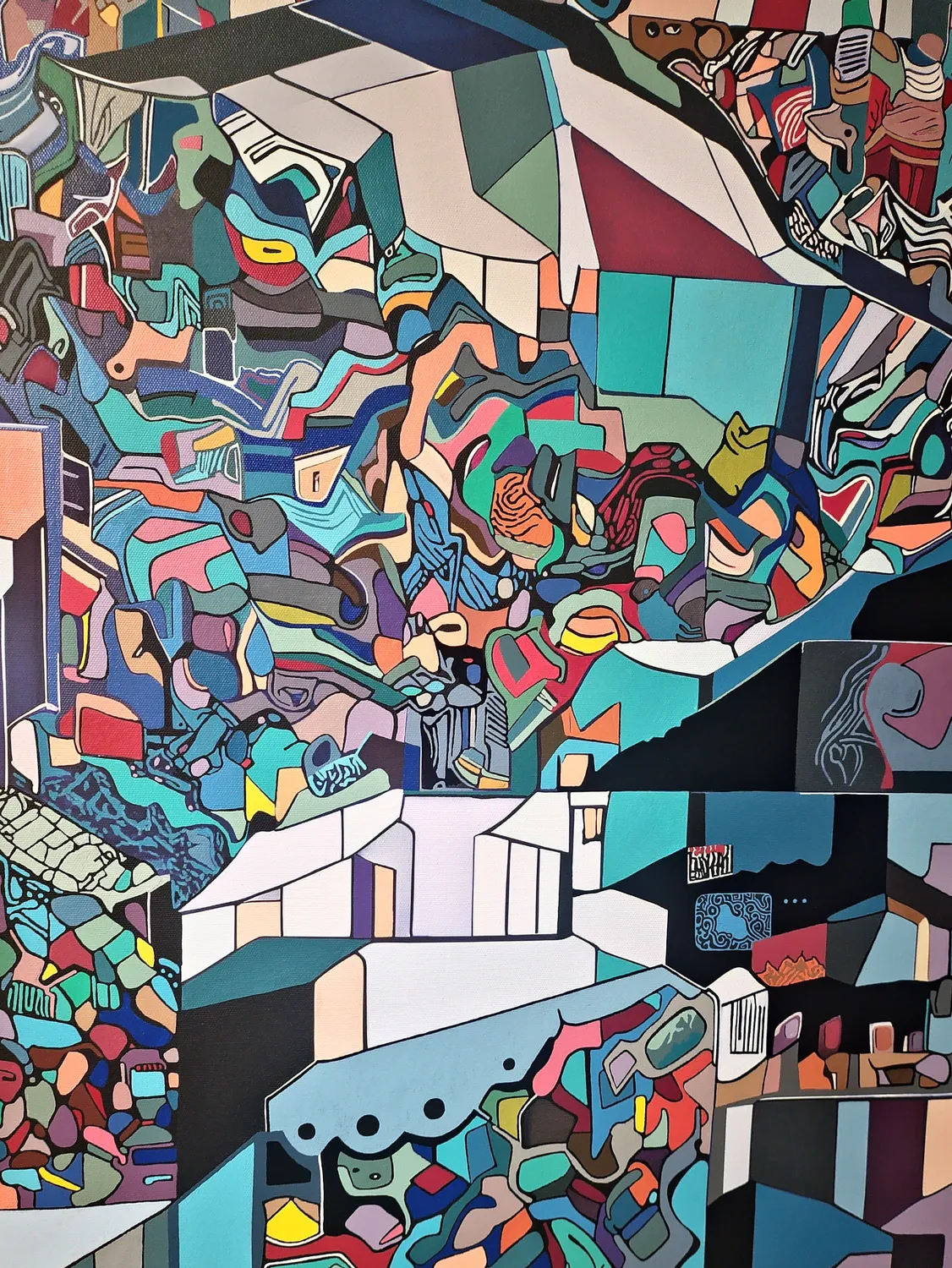 Eugene's paintings aren't just compositions of colour - they are movements. They seemed to shift before your eyes, pulling you in, disorienting in the best way. His secret? ‘-black’ - a rare Japanese paint so dense that it absorbs nearly all light, creating an illusion of infinite depth. He orders it from a master in Japan, layering it alongside vibrant colour, bending space itself on the canvas. When you stand before his work, it’ as if you’ falling into the painting, moving between its layers, losing balance for just a second.
