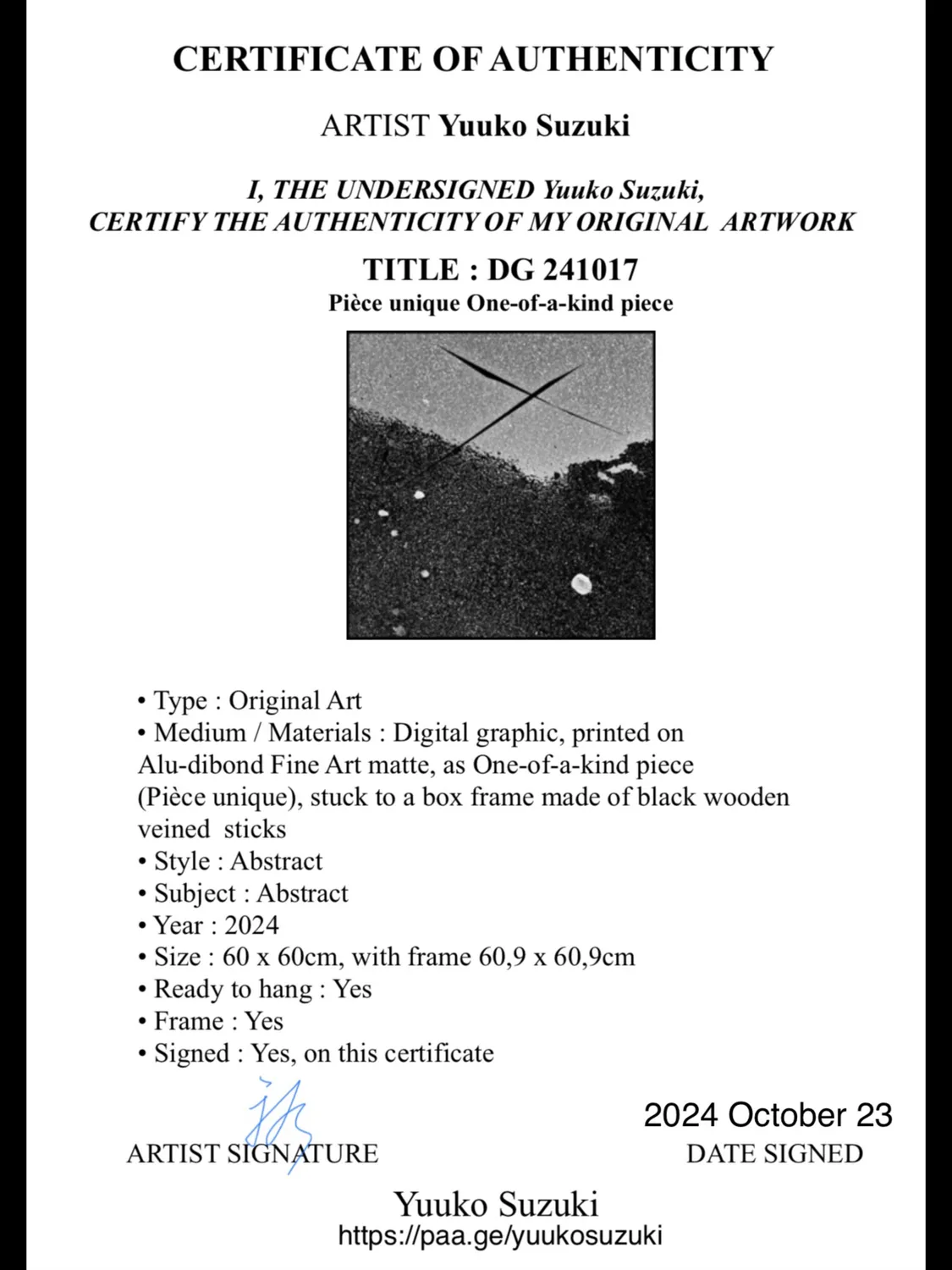 Digital graphic, printed on matt Alu-Dibond Fine Art, as a unique piece with certificate.