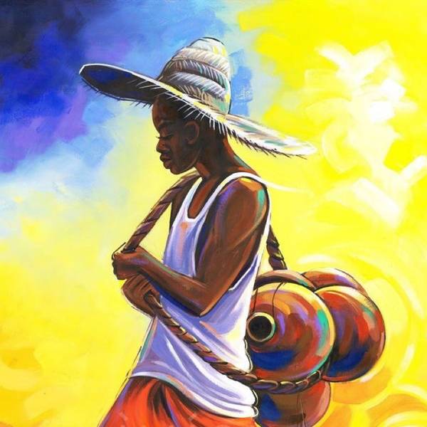 "Palm Wine Tapper" is a vibrant and captivating art print that showcases the rich cultural heritage of West Africa. The artwork depicts a skilled palm wine tapper perched high on a sturdy palm tree, expertly extracting the refreshing beverage from the sap of the tree.