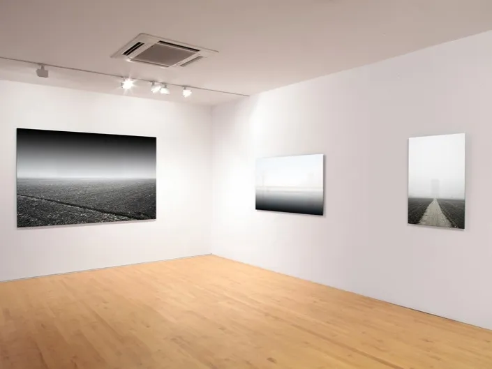 In Japanese Zen Buddhism, Satori, a mystical sounding word, describes the moment of experiencing all-comprehensive understanding. Klinger’s photographic series Satori Room shows digitally altered picture spaces and views which time and again combine the factual with the abstract, uniting the concrete with the indeterminable. Thus the perceivable world is mixed with non-representational pictures of imagination, pictures which serve as metaphors for the inexplicable and mediate a visual inkling thereof. The cycle aesthetically approaches the subject of the absolute and sublime and poses the oft asked questions: Whence do we come? Who are we? Where do we go? Edition of 6+2AP