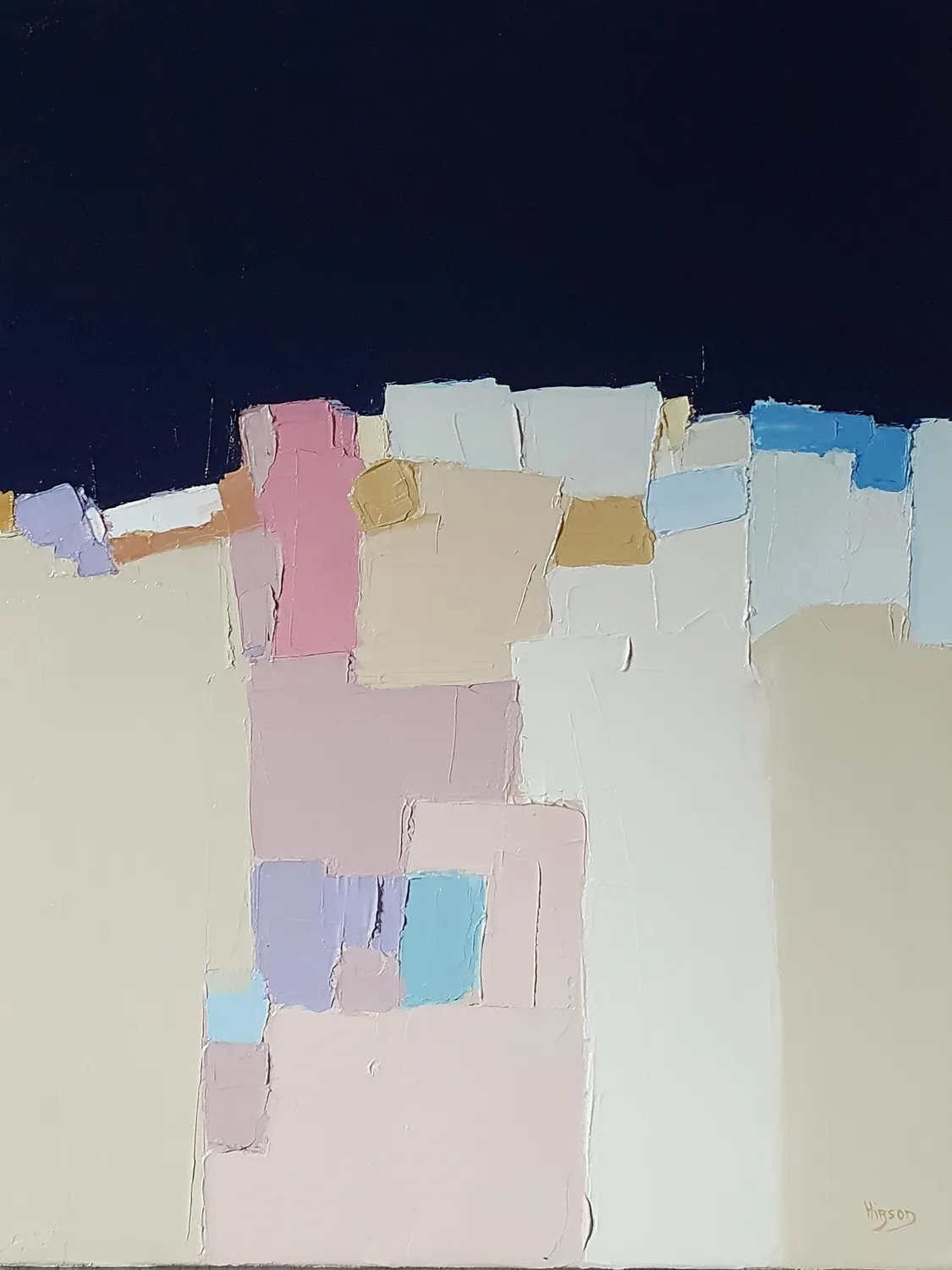 Pour Sandrine Hirson, l'abstraction est une évidence plus qu'un choix. C'est une aventure, une exploration de tous les possibles et un cheminement vers l'âme. Sa démarche est exclusivement émotionnelle et passionnée. Elle puise dans ses émotions l'énergie nécessaire à la création et explore ses propres sentiments à travers la peinture. Elle renoue ainsi avec l'intime et l'inconscient. Sa peinture est une errance subjective où la dérive devient liberté. Grâce à ses gestes et sa pâte, elle crée des effets de lumière pour inventer des mondes imaginaires et infinis, des univers différents et une déclinaison personnelle de ses sentiments.