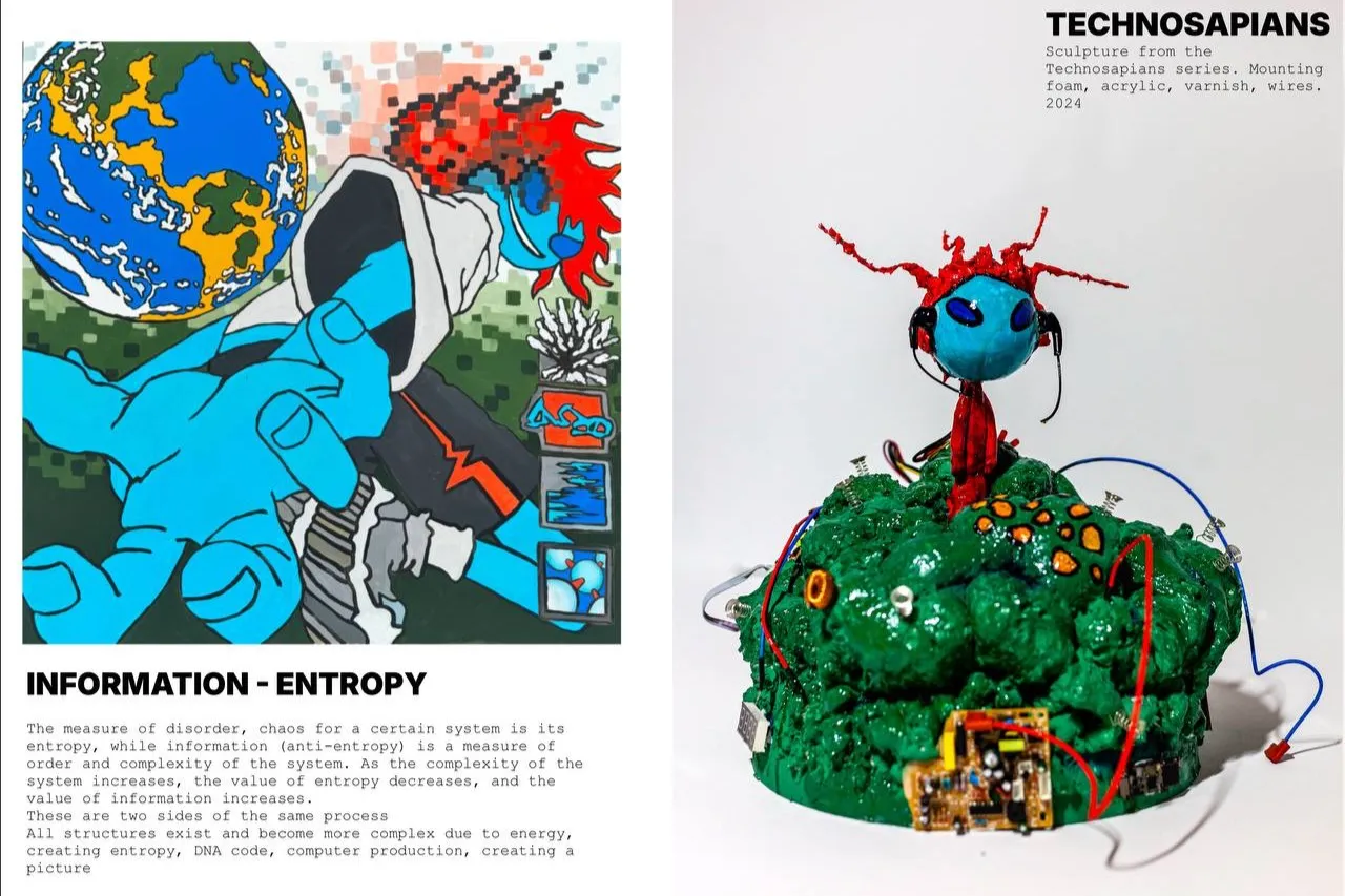 With no formal training, their education comes from cinema, techno beats, and the streets. Their art pulses with movement, rebellion, and energy—a world where vibrant colors meet stark realities, where every piece demands attention.