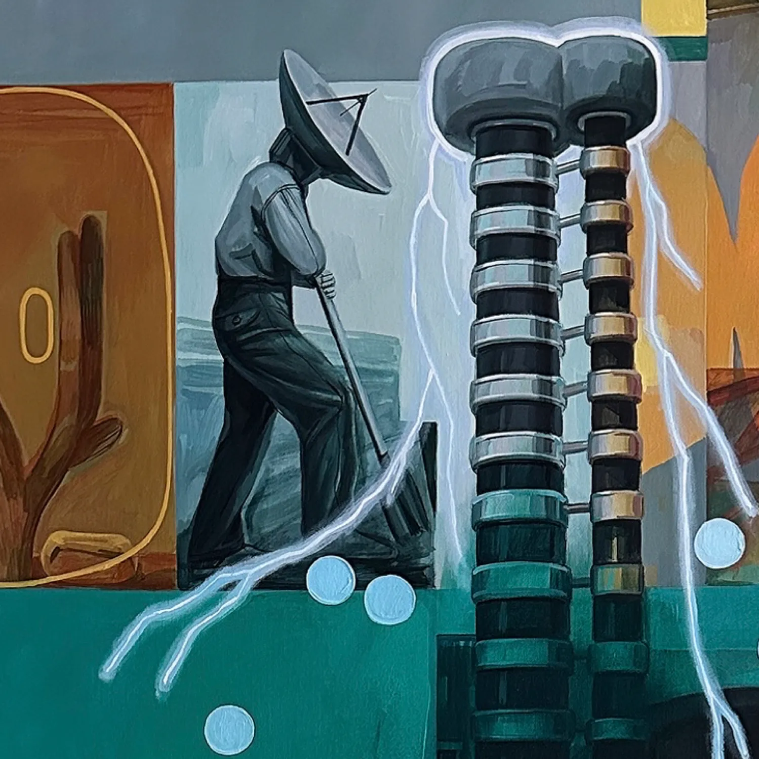 His raw and rebellious style gained recognition locally and beyond, with each mural telling a unique story inspired by personal experiences and societal issues. As Feros evolved as an artist, he transitioned from graffiti to abstraction and figurative surrealism. His works create alternate realities, distorting familiar forms to offer viewers a unique perspective on the world, and continue to evolve with enhanced sophistication and complexity.