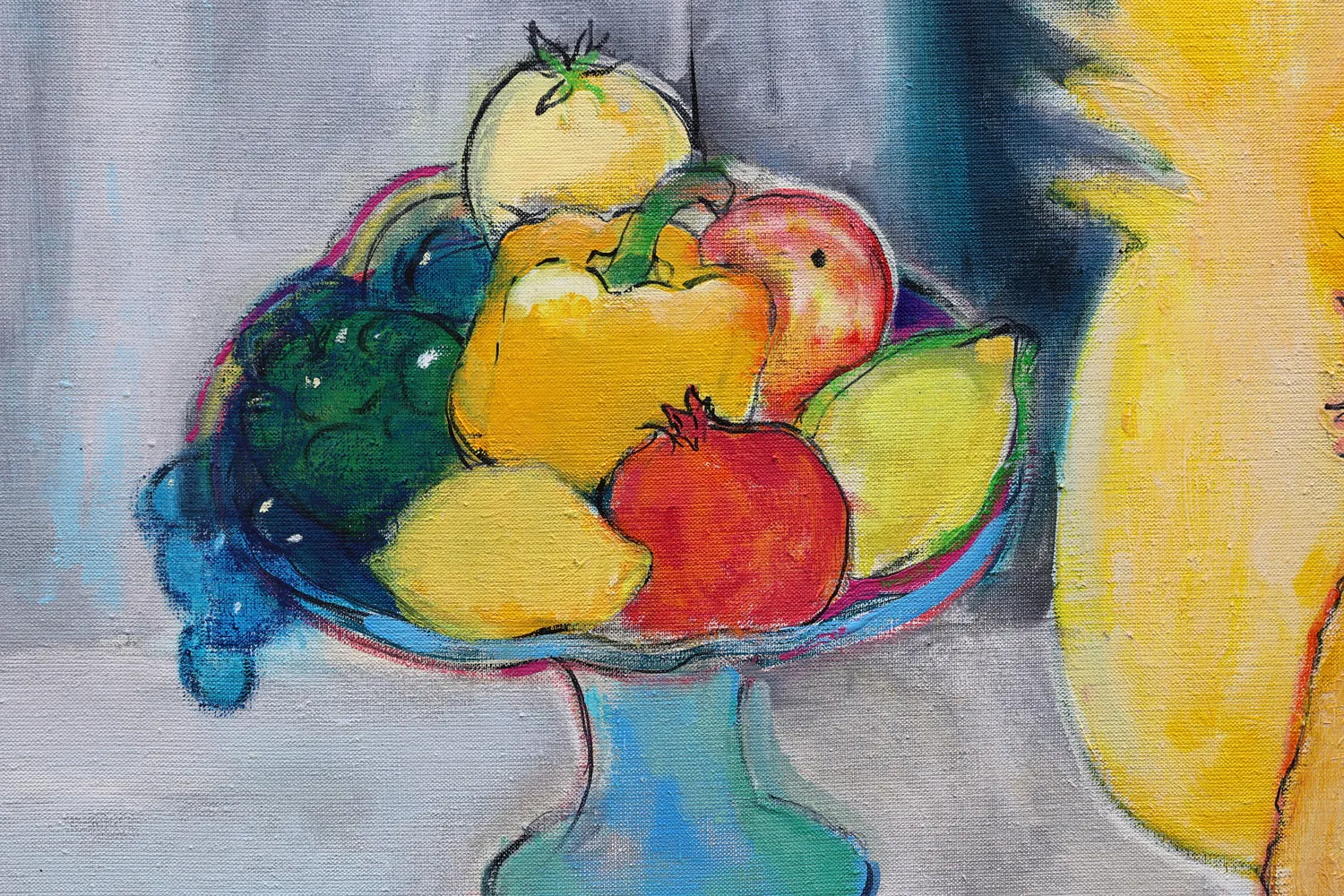 With its bold color choices and expressive brushstrokes, this artwork is a fusion of modern sophistication and classic still life tradition. A perfect statement piece for those who appreciate art that captivates and sparks imagination. Now available for sale!