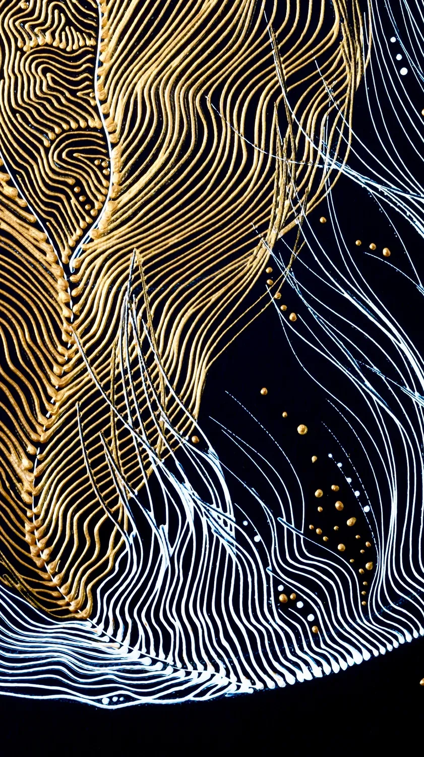 Golden lines pulsate through intricate white textures, suggesting the presence of something elusive yet constant — a force that exists beyond ordinary perception, revealed only to those attuned to its presence.