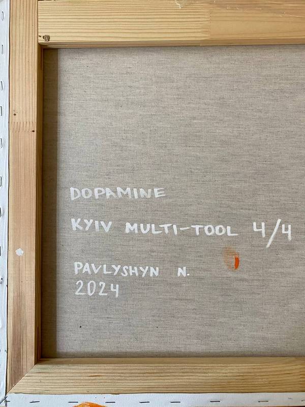 Серія картин KYIV MULTI-TOOL (2023–2024) Проєкт про досвід переживання повномасштабної війни у відносно безпечному Києві. Кожна картина — це своєрідне вікно у зовнішній світ 2023 року, де відображено вплив війни на людей через призму гормональних реакцій: ‘melatonin’ — порушений сон, ‘oxytocin’ — соціальні зв’язки, ‘cortisol’ — реакція на стрес, ‘dopamine’ — відчуття щастя. KYIV MULTI-TOOL — це пам'ять про місто та його мешканців, які переживали цей рік по-різному, але були об’єднані фізіологічними реакціями наших тіл на спільний виклик. Серія картин досліджує глибокий зв’язок між людською фізіологією та воєнними діями в Україні. Яскраві кольори, динамічні форми та багатоперспективність запрошують глядачів замислитися над взаємозв’язком між внутрішніми процесами людини та навколишнім світом. Ця серія — метафоричне вікно, ретроспектива часу, забарвленого емоціями, викликаними подіями у країні й відображеними через гормони у наших тілах.