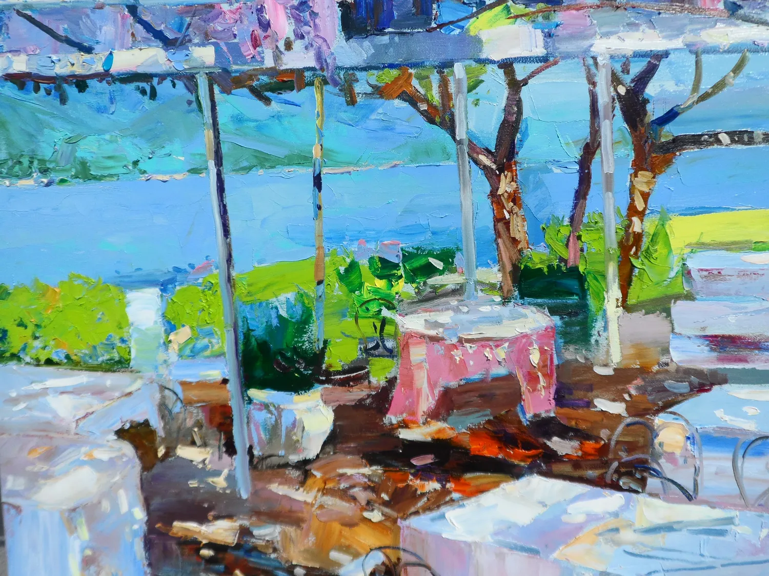 He is known for his bright colour palette and canvases which brim with light. Taking inspiration from the Spanish early impressionist artist Joaquín Sorolla, Yehor plays with contrast, exposing light and shadows. Often working in plein air, Yehor’s paintings instil the feeling of breathing freely and almost soaring above the ground.