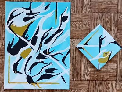 «Народження Світу з хмар та птахів» диптих холст, акрил 30х40 см., 15х15 см., 2025 р.