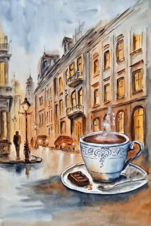 You walk slowly down the street, clutching a cup of hot coffee that smells of dark chocolate and a hint of cardamom. The warmth of the drink spreads through your body, as if fueling your fatigue, but you take your time.