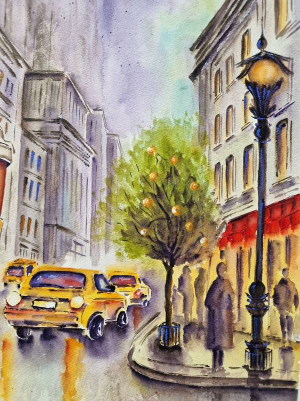 The city sounds: the rustle of footsteps, distant laughter, the rustling of leaves and car signals. The light of headlights falls on the wet pavement with yellow glare. People pass by, in conversations, in thoughts, in their own worlds. You become part of this movement. Step by step, the city lets you into its space, and you breathe in its stories along with the air and the aroma of coffee.