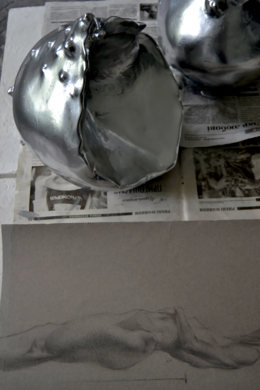 Sculpture, 30 × 30 × 25 cm each polystyrene, base and finish putty, lacquer, chrome