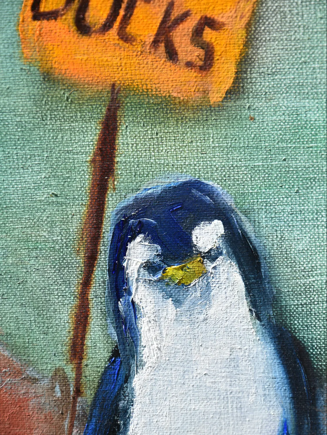Penguins with 'Warning Ducks' banners