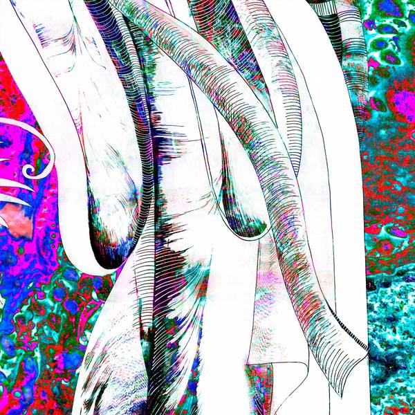 This collage combines the ink graphics "Girl and dragon" (2024) and the oil abstraction "Amaranth flashes" (2019). The black and white outline of the first artwork, personifying logic, coexists perfectly with the multi-colored spontaneity of the second one - just like in the yin-yang philosophy, which is so beloved in Eastern countries. Taken separately, "Amaranth flashes" resemble those strange multi-colored spots that we see in photographs from offices measuring a person's aura. In science, the phenomenon on which this process is based is called the "Kirlian Effect".