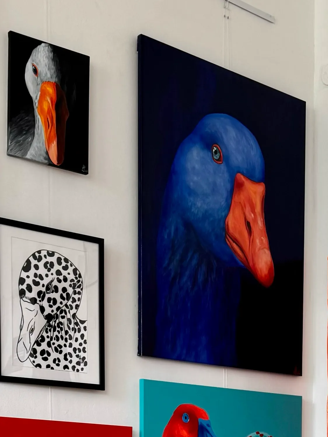 Her work is primarily in the surrealist style, with a particular focus on paintings of geese. The artist chose this form of expression to convey her inner feelings.