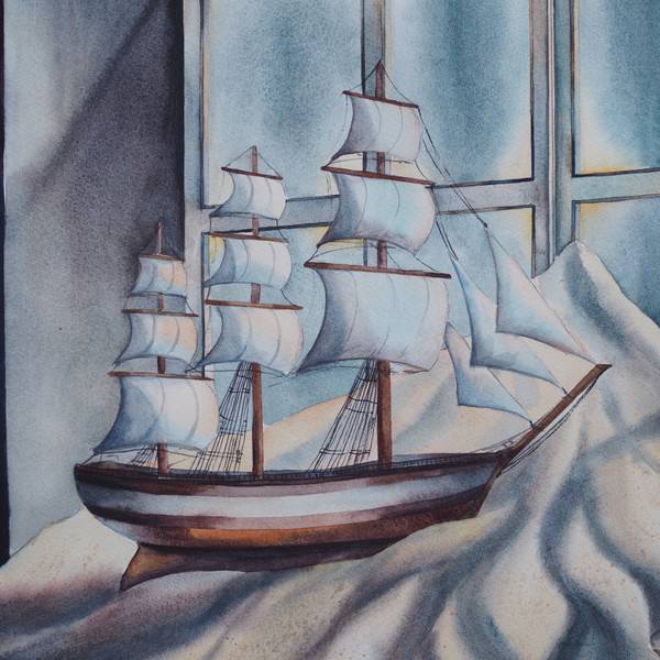 "Oblivion" explores the delicate boundary between memory and forgetfulness, presence and absence. The ship, traditionally a symbol of journey and discovery, stands motionless within the confines of a room, its sails forever filled with winds that will never carry it forward. It rests on waves of sand — time's silent witness — slowly consuming its surroundings, blurring the distinction between land and sea, movement and stasis.
