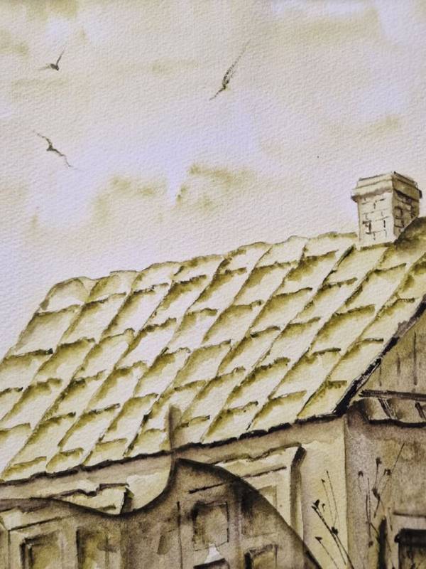 This is not just a combination of techniques. This is a tangle of emotions. Watercolor paints a space, and embroidery roots it in reality. This is a painting that wants to be not just seen - but felt.