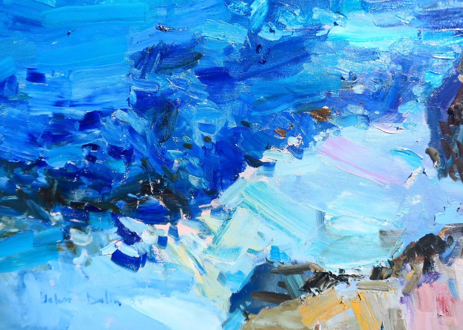 He is known for his bright colour palette and canvases which brim with light. Taking inspiration from the Spanish early impressionist artist Joaquín Sorolla, Yehor plays with contrast, exposing light and shadows. Often working in plein air, Yehor’s paintings instil the feeling of breathing freely and almost soaring above the ground.