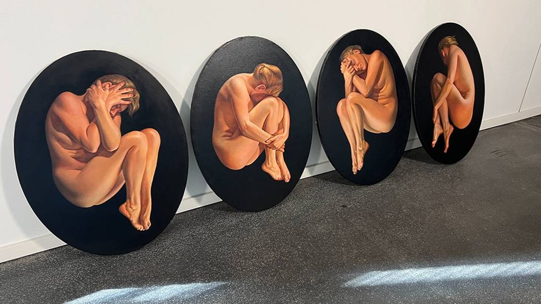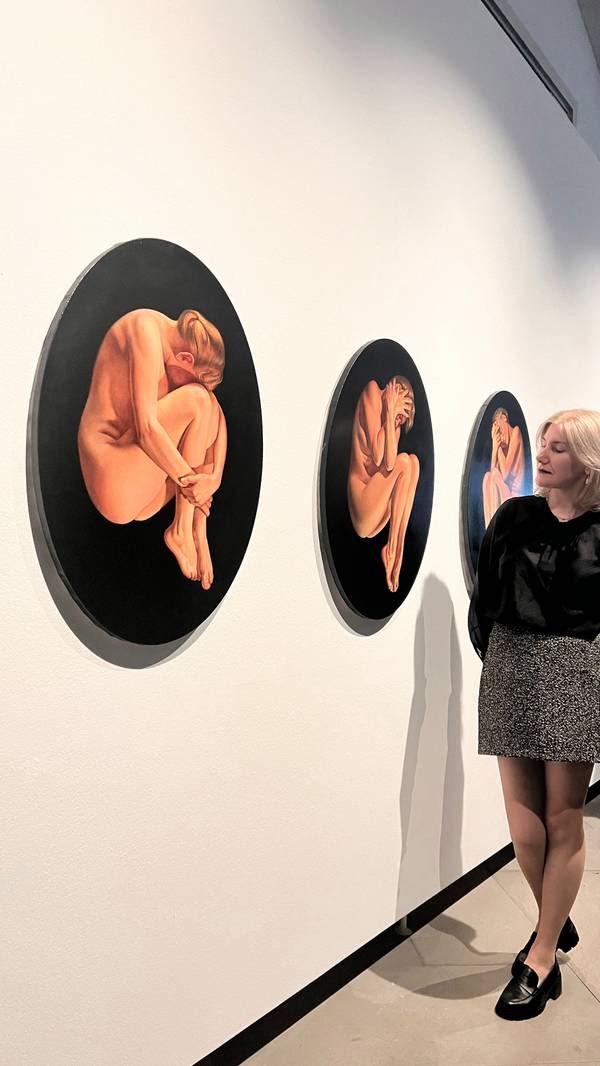 In my work, I used classical painting techniques with three-dimensional layered modeling to highlight the psychological state of the figures and their inner turmoil through composition and color. In the end, a woman is left to look for support exclusively within herself. To save oneself, one needs to find the inner life-giving forces embedded in us by wise nature. A strong person, who is now a frightened child, must at the same time become a mother who loves, protects, envelops, and cares for her fetus. Only by taking care of ourselves like mothers are we able to overcome the crisis.I based my artworks on a series of photo-self portraits. The figures, which appear to partially melt or dissolve into the void, symbolize the disintegration of identity and the loss of free will in the face of oppressive circumstances. The dark background and oval formats in the images are reminiscent of the mother's womb. The image of the baby in the placenta expresses a state of deep vulnerability; however, it is located in the mother's womb and is protected. The naked female figures in my paintings are depicted in embryonic poses, serving as a metaphor for vulnerability, fragility, and the endless cycle of life.