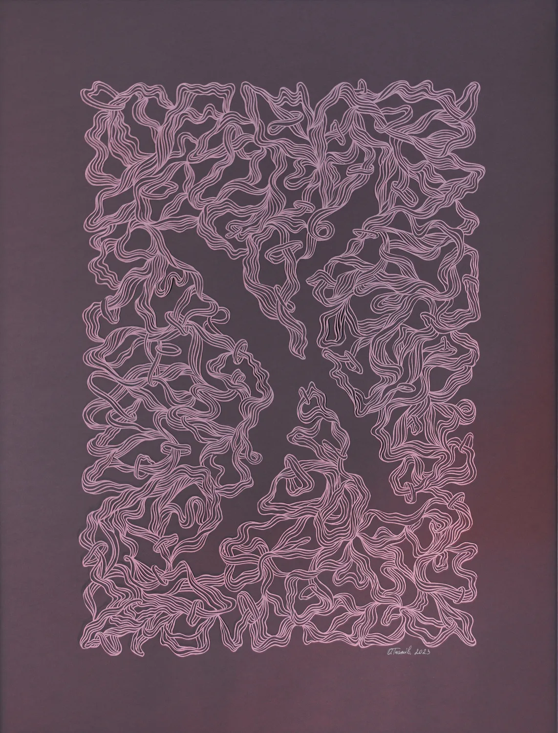 I work in the technique of paper cutting, creating artworks with a knife. Using a method historically common in Ukraine for home decoration, I reinterpret it to produce contemporary graphic pieces that serve a similar purpose — to adorn or complement spaces. My works aim to immerse viewers in a state of meditative observation and discovery of details or imperfections, offering emotional support and a unique artistic experience.