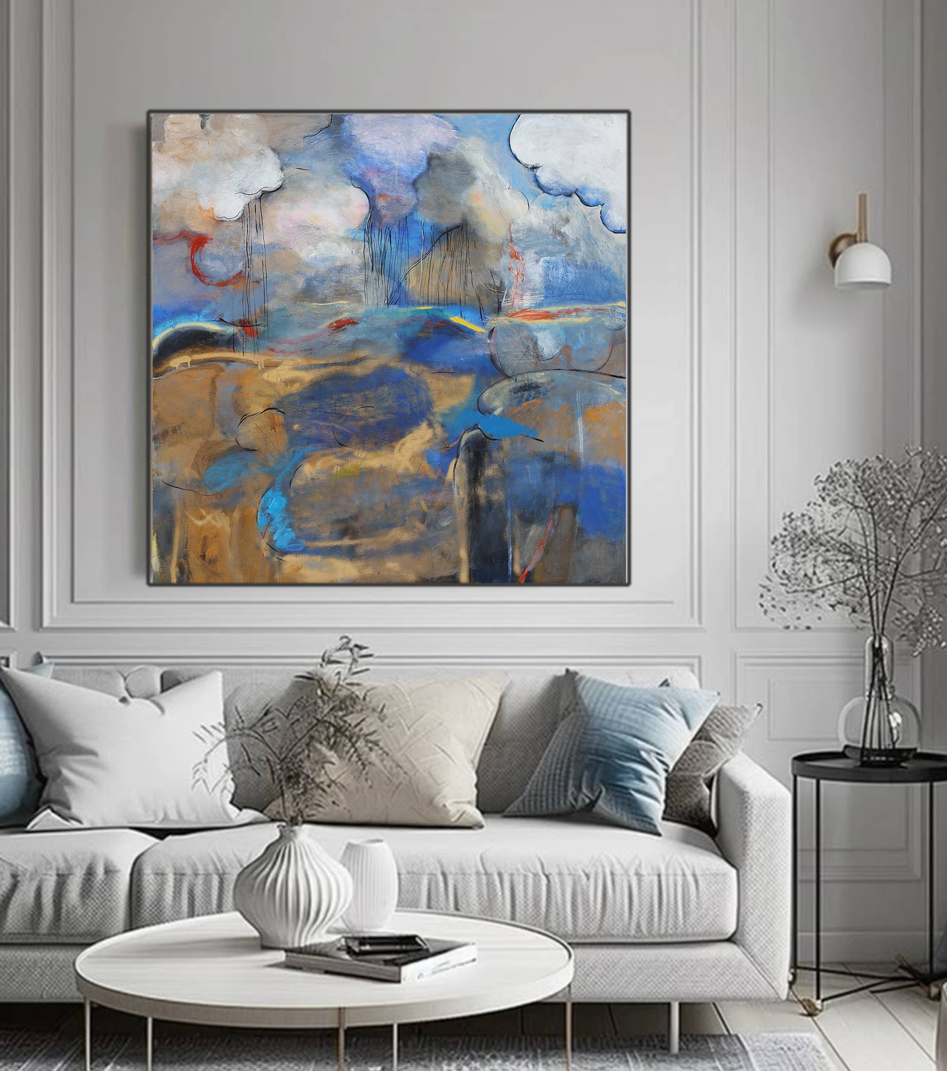 With its blend of abstraction and natural elements, Landscape with Lake and Clouds evokes an emotional response, offering a meditative escape into a tranquil and ever-changing world. This piece is perfect for those seeking art that brings a sense of calm and wonder to their space.