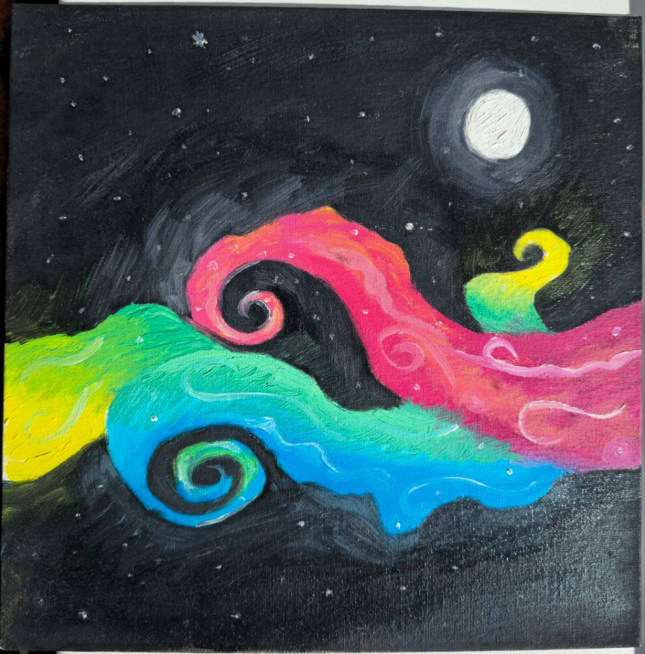 Nights are usually overwhelming. Even under the bright full moon, the brain can be foggy and overwhelmed by the life outside of this big, vast space, that is contained in a moment of watching the moon in the sky above.