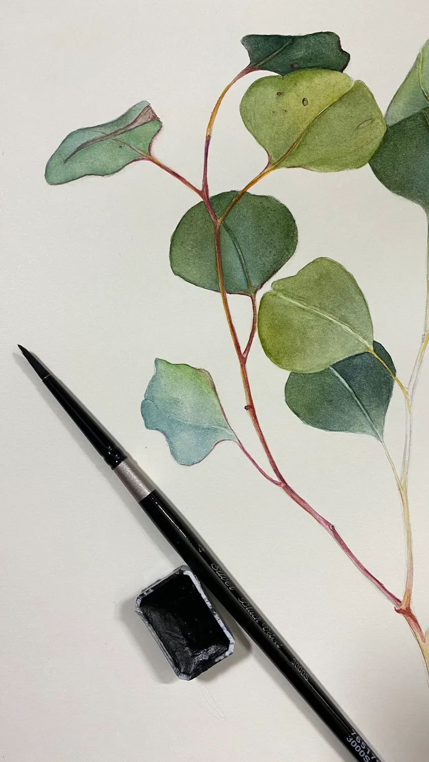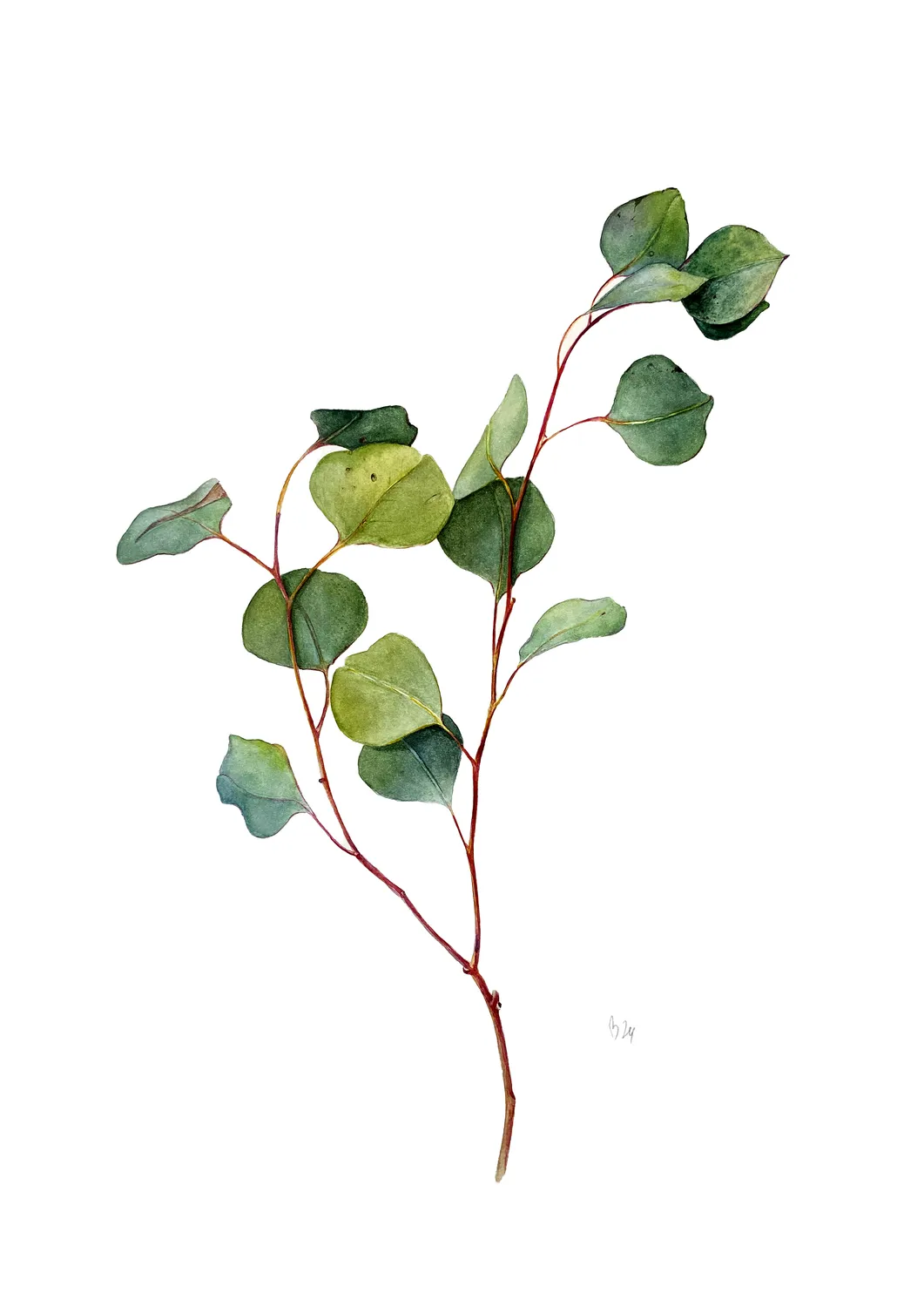 A graceful twig of Gunn's eucalyptus. Original watercolour Painting