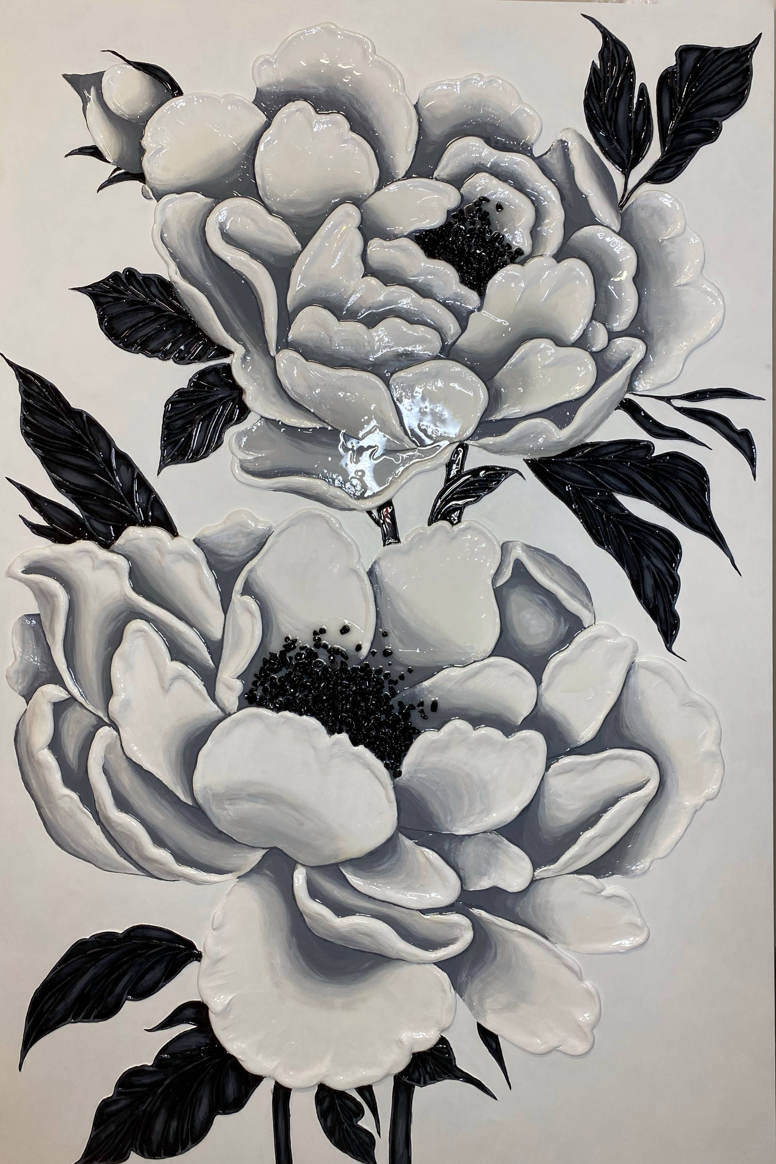 White flowers with obsidian stones