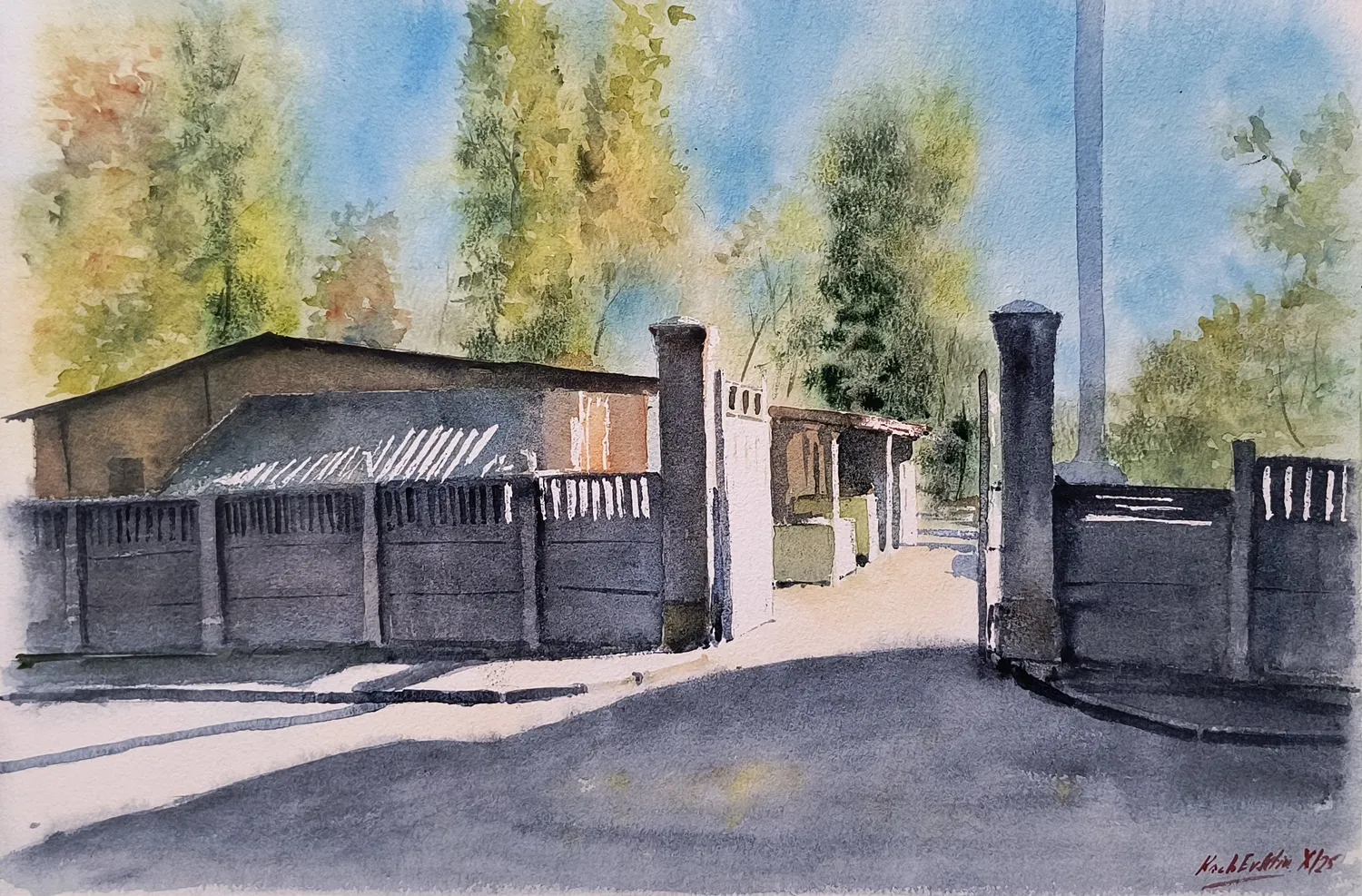 Beauty near my house - interesting light and shadow through the gate on Yuriy Glushka Street, Kyiv, Ukraine.