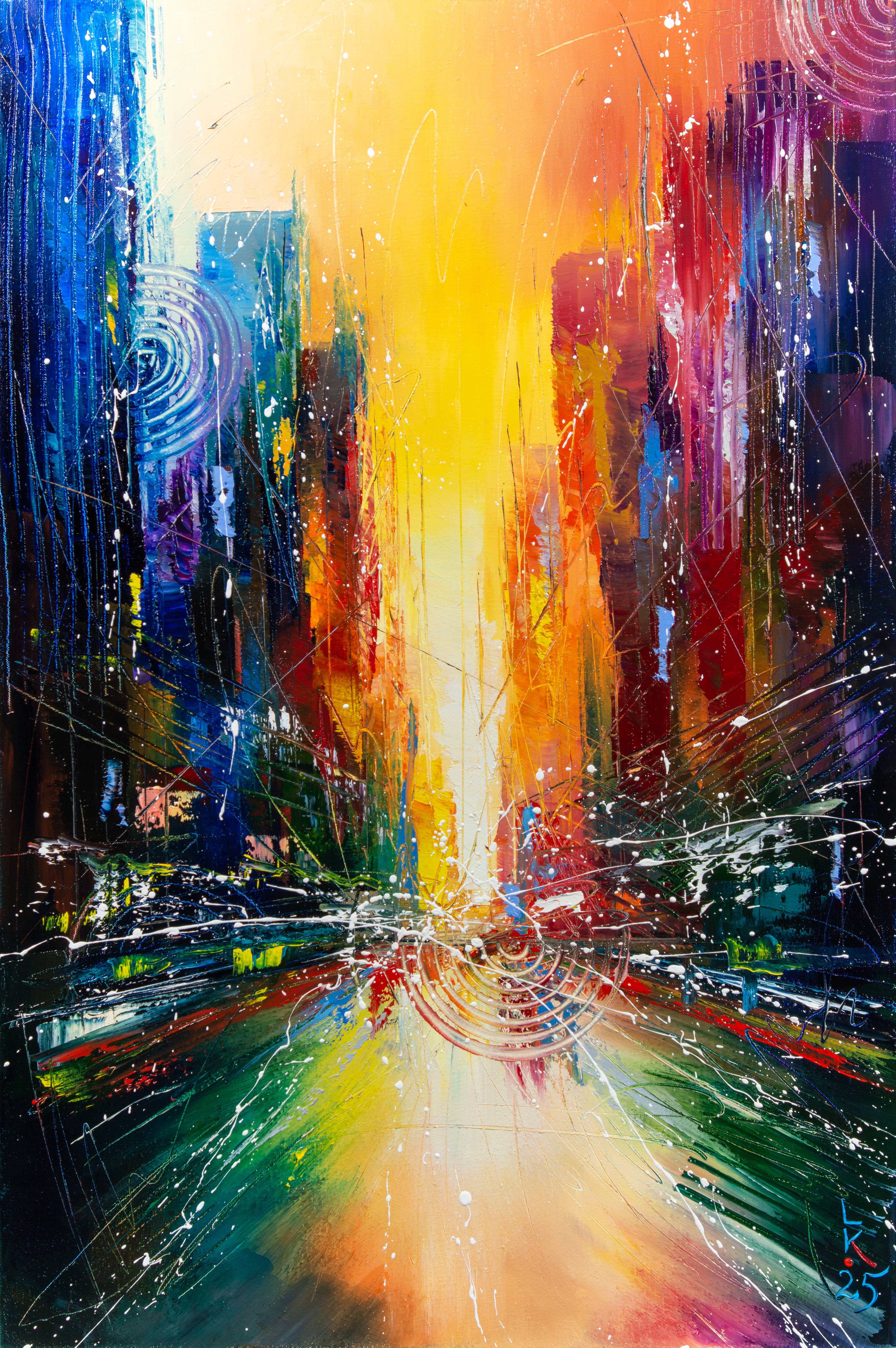 "Urban Awakening" captures the elusive moment when a city stirs to life, and light infuses its structures with vibrant energy. More than just an abstract cityscape, this modern art piece embodies inner renewal, suggesting that each day can ignite something powerful within us.