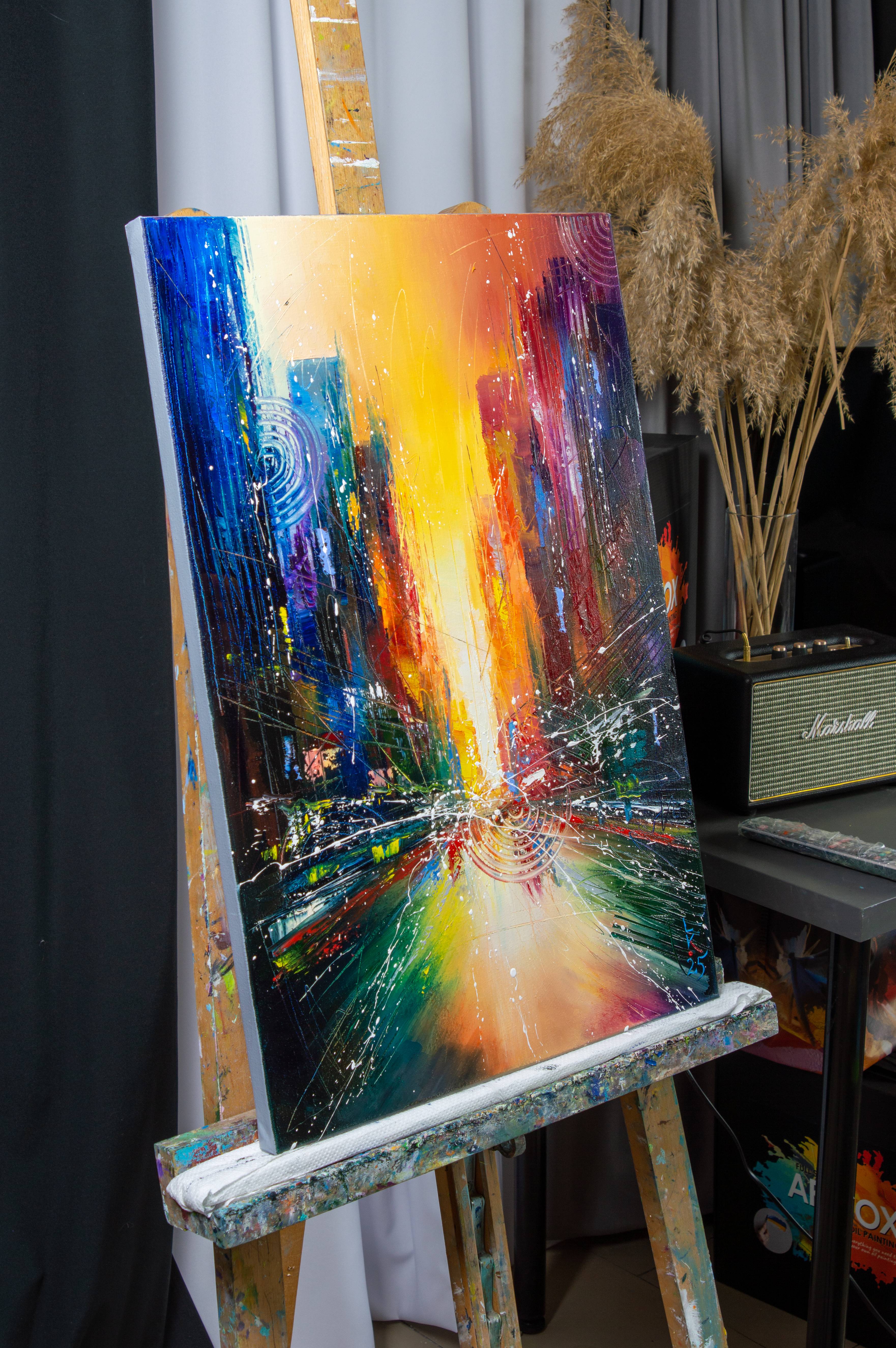 This medium-sized painting is a great choice for adding a touch of modern sophistication to your living room, bedroom, or office. Its evocative nature and thoughtful composition make it a captivating focal point, inviting viewers to contemplate the energy and light within themselves and the world around them. Bring home "Urban Awakening" and infuse your space with its unique vibrancy.