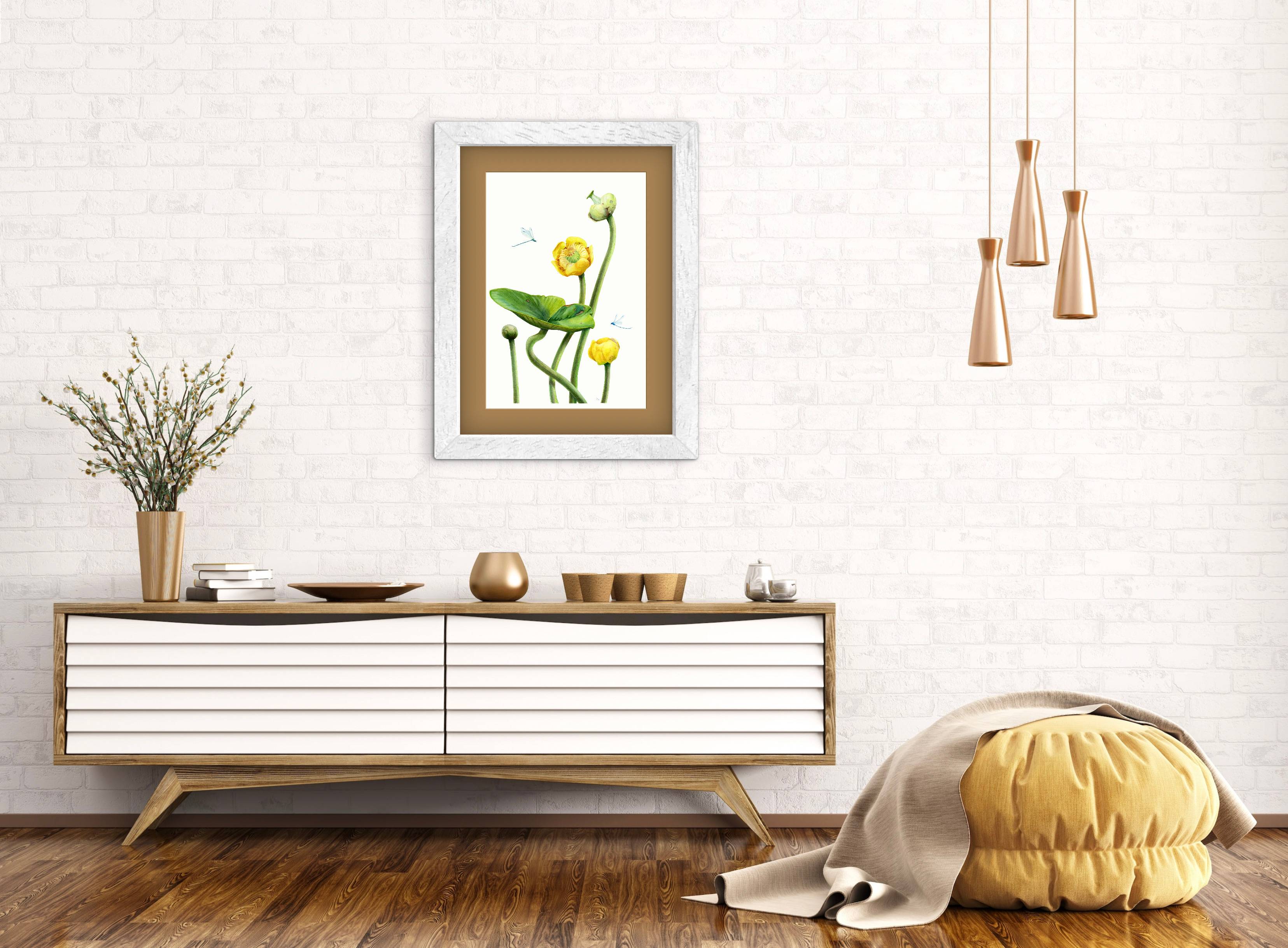 This medium-sized painting brings a touch of summer warmth and joyful serenity to any space. The bright colors make it attractive accent piece for your home. The minimalist style suits any interior. Invite tranquil beauty into your home to let its subtle charm enhance your everyday life. This painting of an aquatic plant is invitation to pause and to feel wonders of natural world.