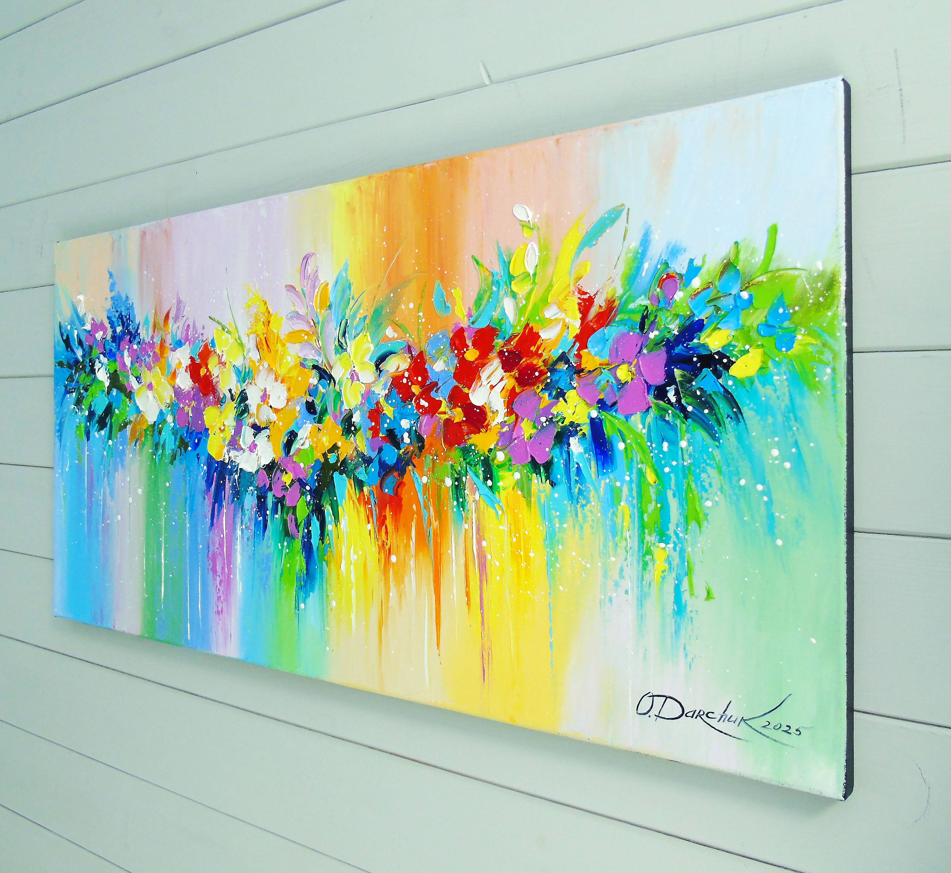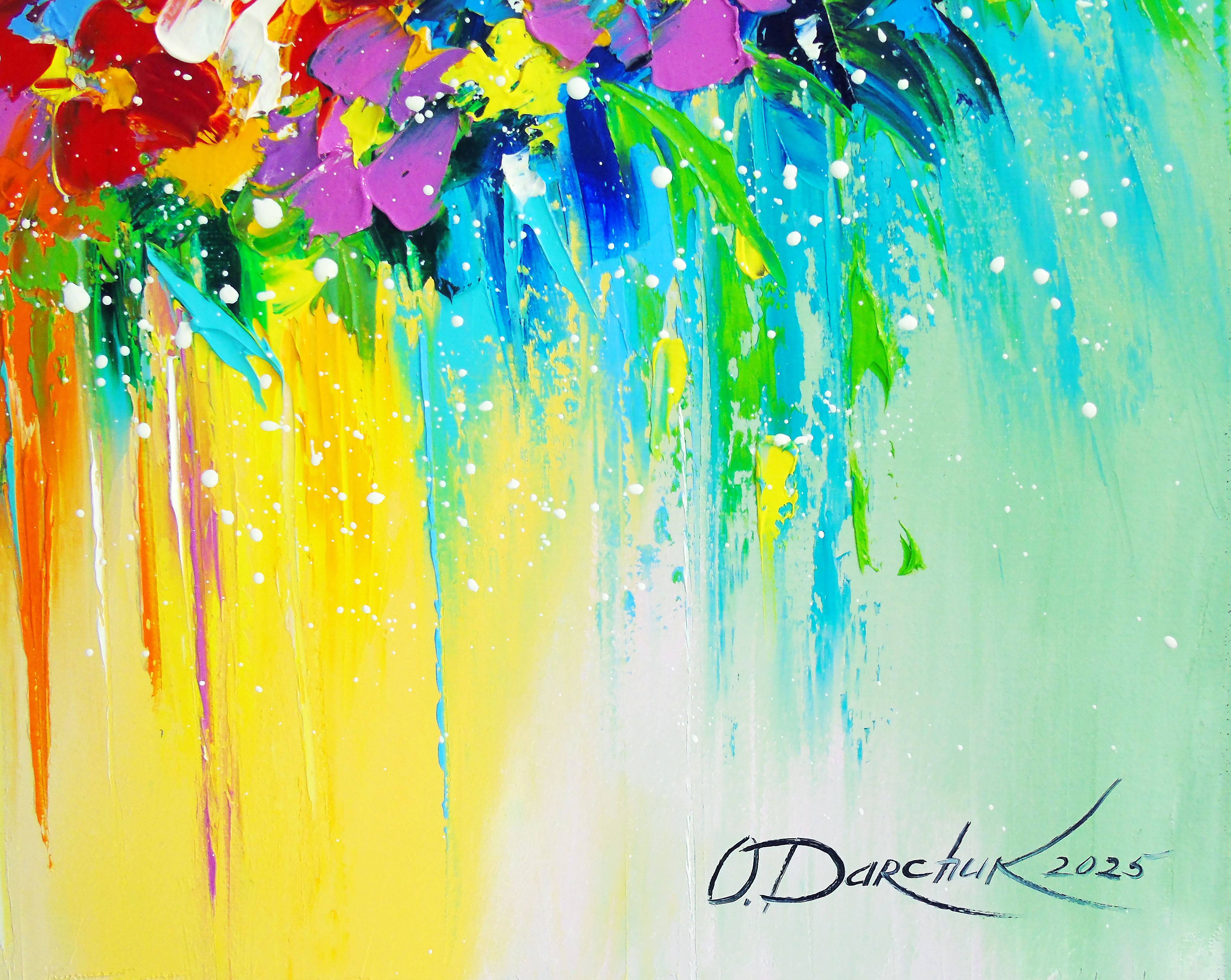 Music of the Soul, oil painting on canvas. 100% handmade with high-quality oil on canvas, painted sides. For interior decoration or as a gift. It will decorate your interior and will delight you and your loved ones for a long time. Ready to hang. A stunning arrangement of colorful flowers spans the canvas, creating a lively and dynamic visual effect. The background features a blend of bold colors dripping downward, enhancing the floral elements. I poured vibrant energy into this oil painting, blending abstract and impressionist styles to celebrate nature’s joyful chaos. The burst of colors and dynamic floral forms express a lively spirit that uplifts any space, filling your home with warmth and bright optimism. This piece is a celebration of life’s beauty and the soul’s constant dance with color and light.