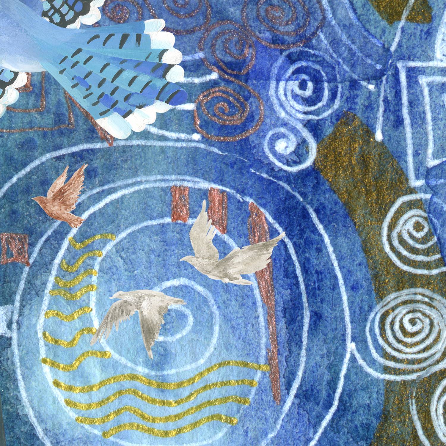 This collage consists of three of my paintings: "Search for harmony" (2024), "Liberation by wings" (2024), "Flickering Space 1" (2019).