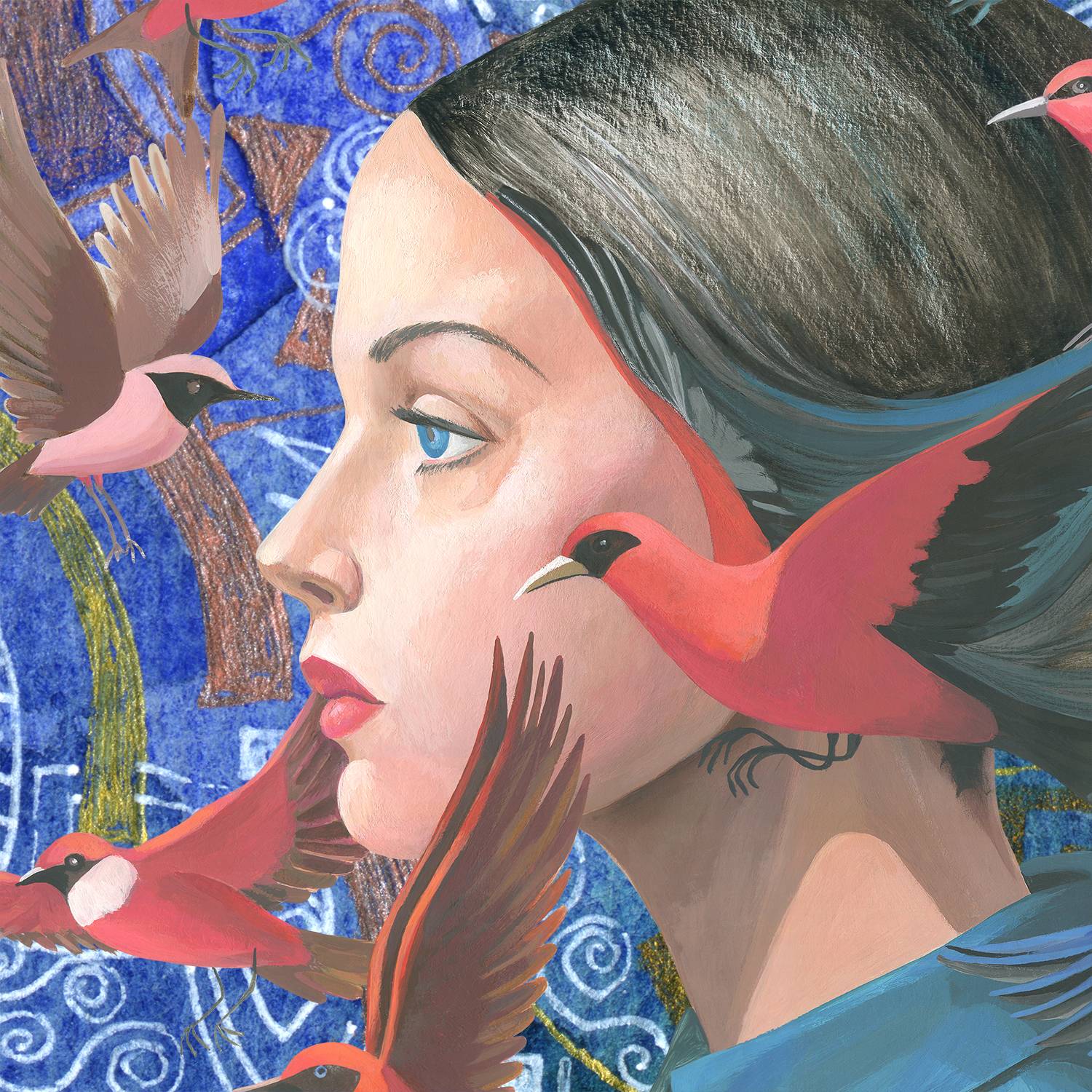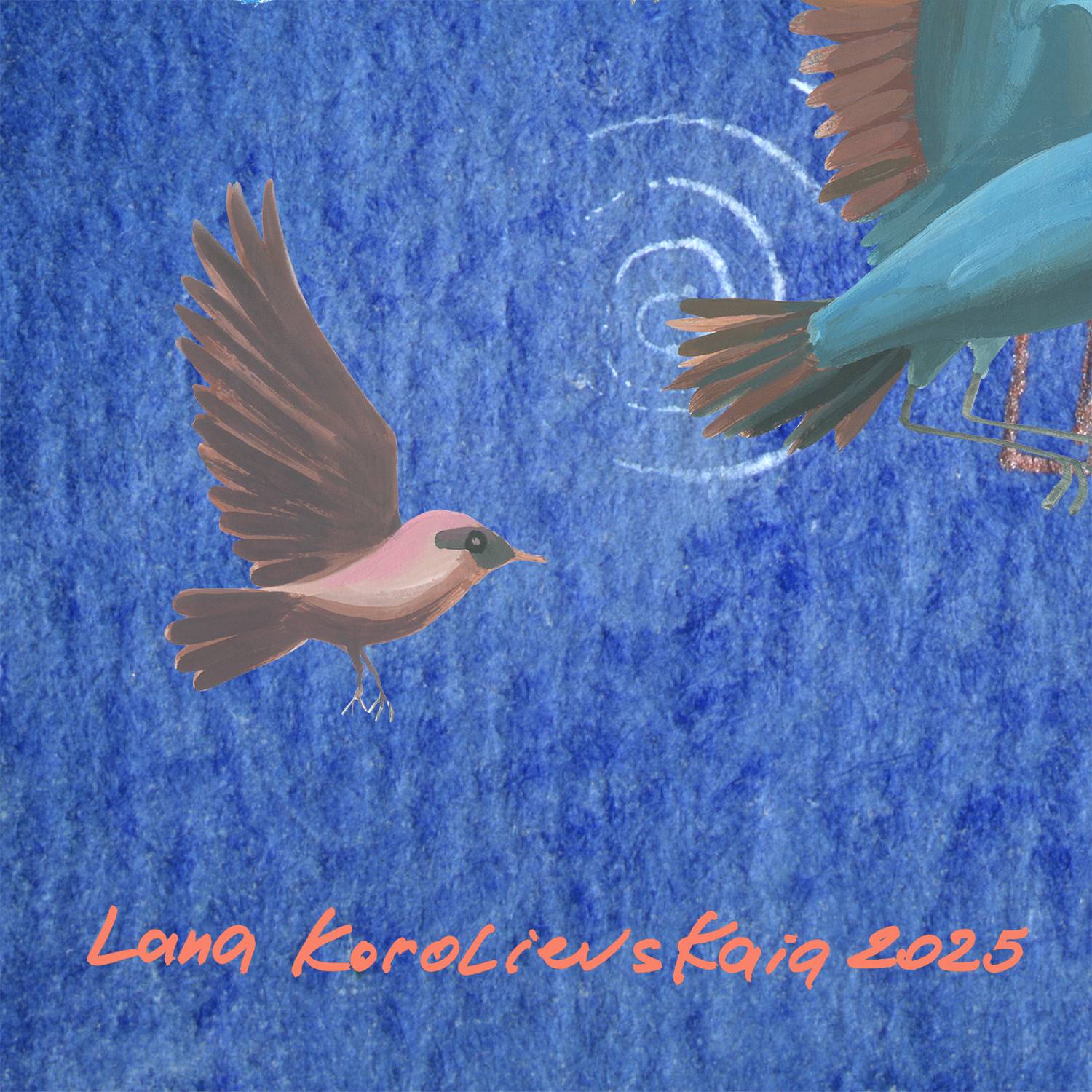 This picture is about our quantum twins, existing at different points in the time continuum. When we think about ourselves in the future or remember ourselves in the past, believing that we can give good advice to our younger selves in our minds, or receive advice from our old selves now, this attempt to establish contact is only imaginary. It is like a conversation with emptiness. Memories or assumptions remain only fantasies. Living in the present is very difficult, and in the past and future is illusory. Therefore, any of the positions is burdensome. Birds appear in the role of thoughts - messengers of our personality, capable of flying to where we cannot get on our own. "Flickering Space 1" is expression of the bottomless space of cosmos - the location of our existence and the symbol of the infinity of being. Search and liberation are two dialectical contradictions. After all, you can search freed from something, and to get free - tired of what you once painfully sought. But it is possible to seek liberation or to be liberated from seeking.