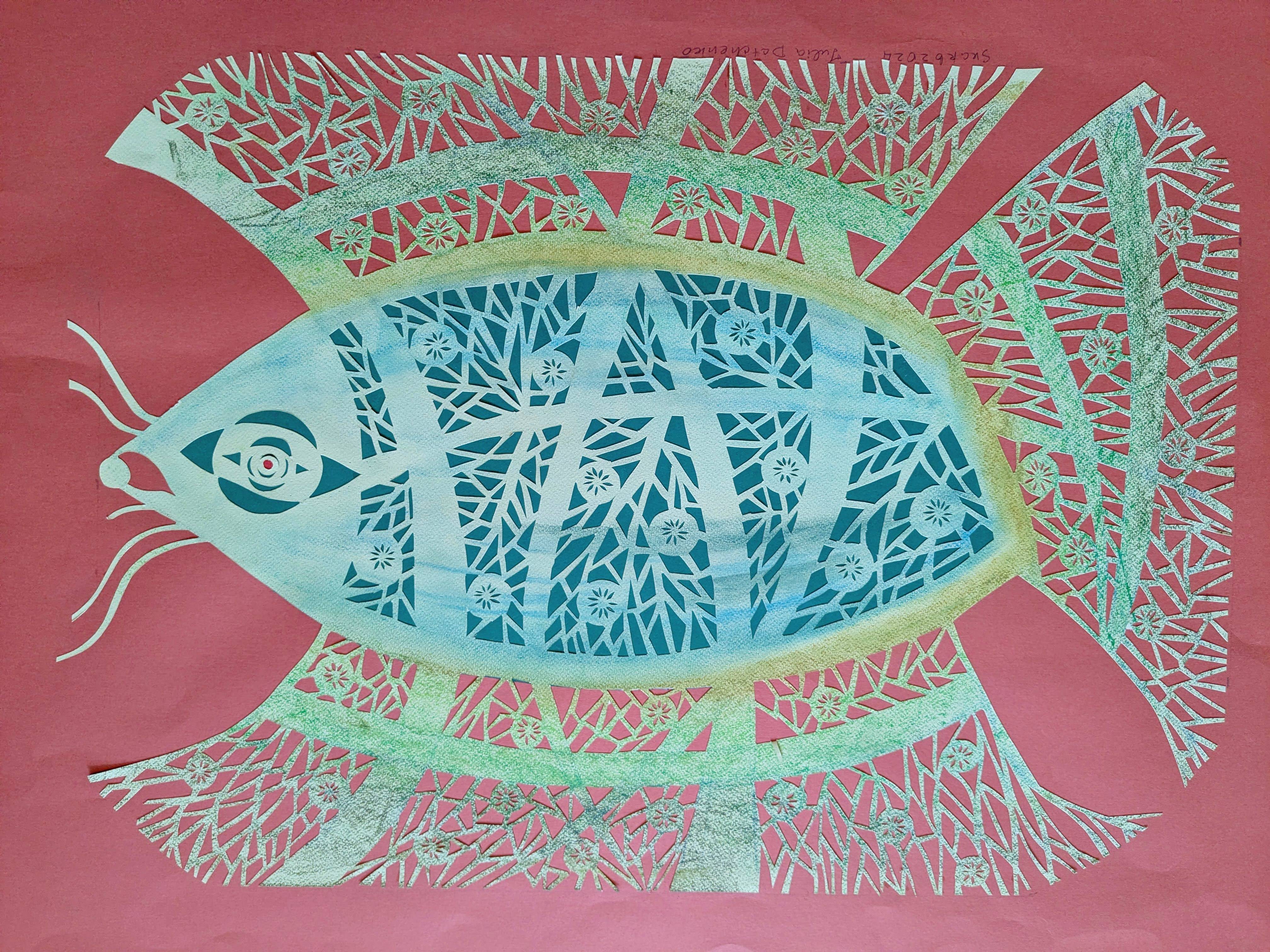 In folk tradition, fish symbolize life, wisdom, silence, and the mysteries of the depths. They are associated with water—the element of memory, the beginning of the world, and fertility. In this vytynanka, fish represent silent knowledge and the depth of the soul from which words arise.