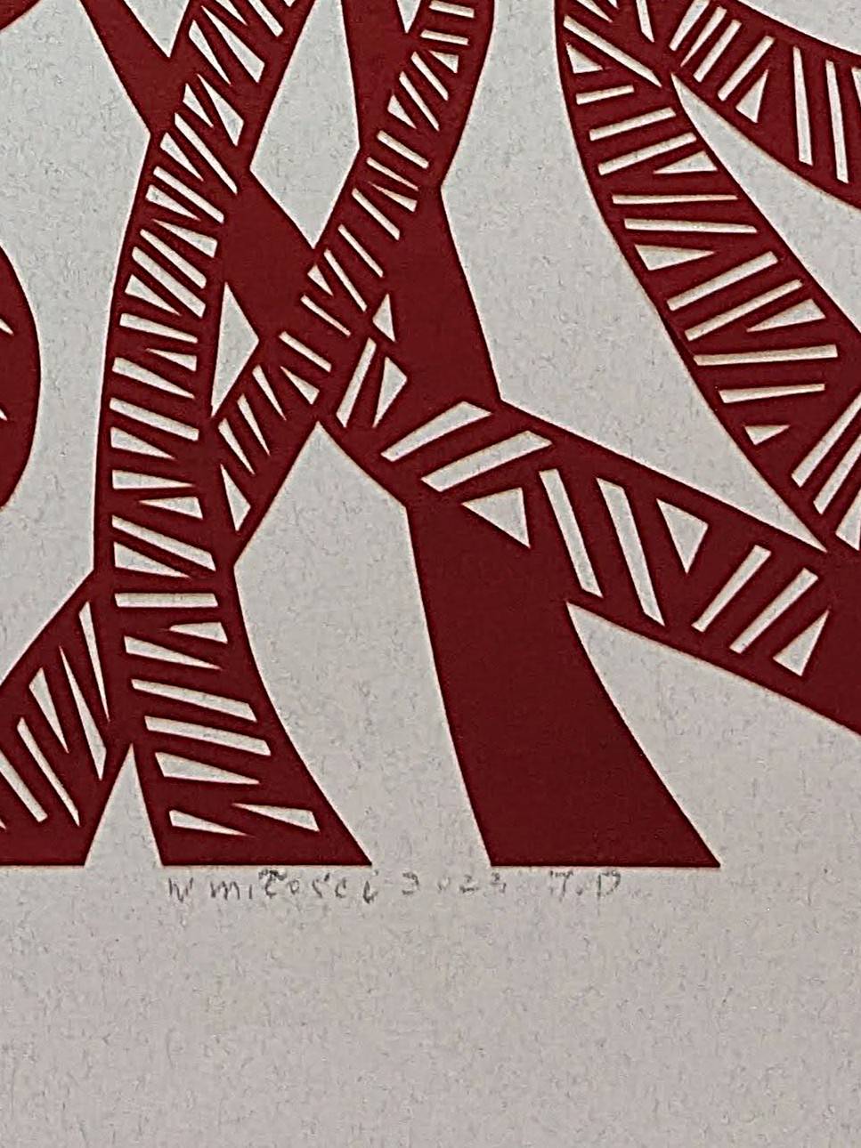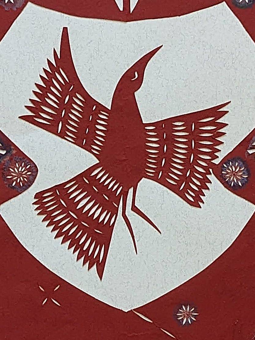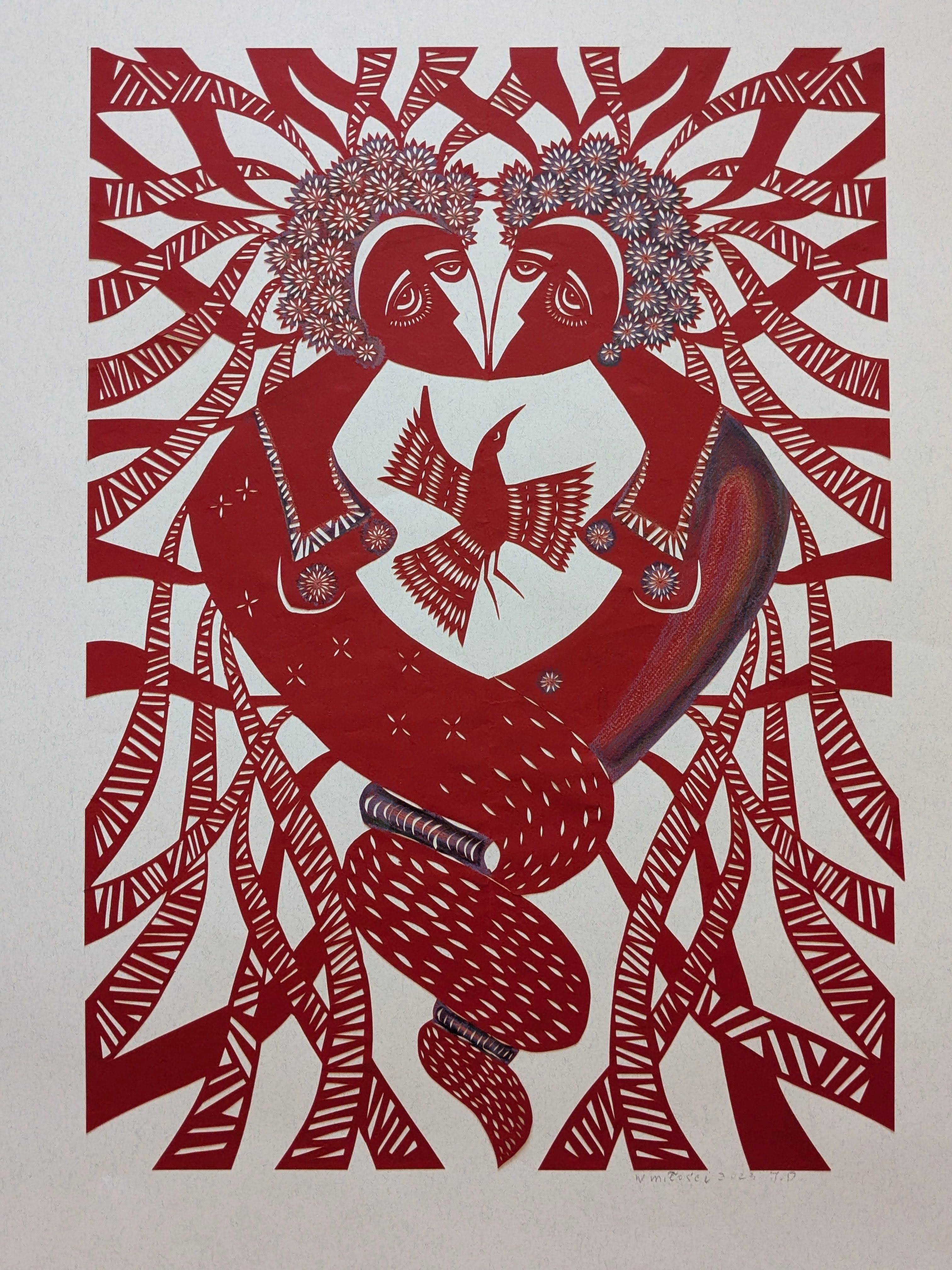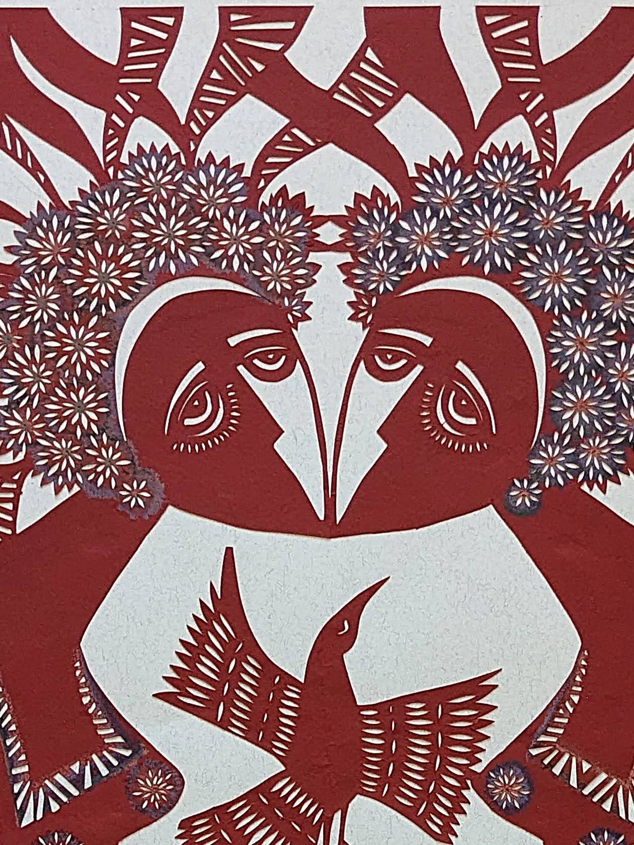 In this paper cutout, a combination of longing, prayer, and tranquility creates a harmonious unity. It depicts female solidarity, sisterhood, and compassion. These are two souls united by love and a shared destiny.