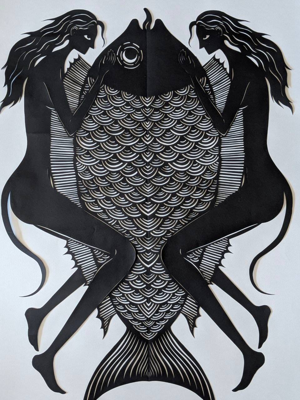 Fish are an eternal symbol of life, abundance, and rebirth. In Slavic tradition, fish were often associated with water spirits, ancestors, and the soul of the world that flows through time. In this vytynanka, the fish is the center of the universe—its body seems to maintain a balance between the two shores of existence.