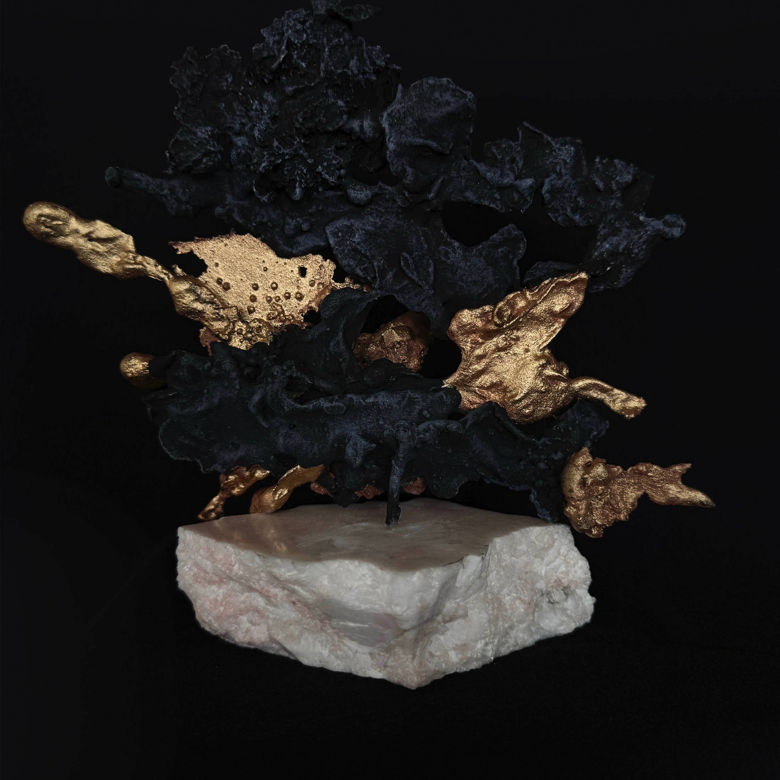 Her sculptures capture a suspended moment in time — a pause where being and not being coexist, creating the most intimate encounter of opposites. Each fragment of metal is unique, its form intuitively shaping the prototype of the future sculpture.