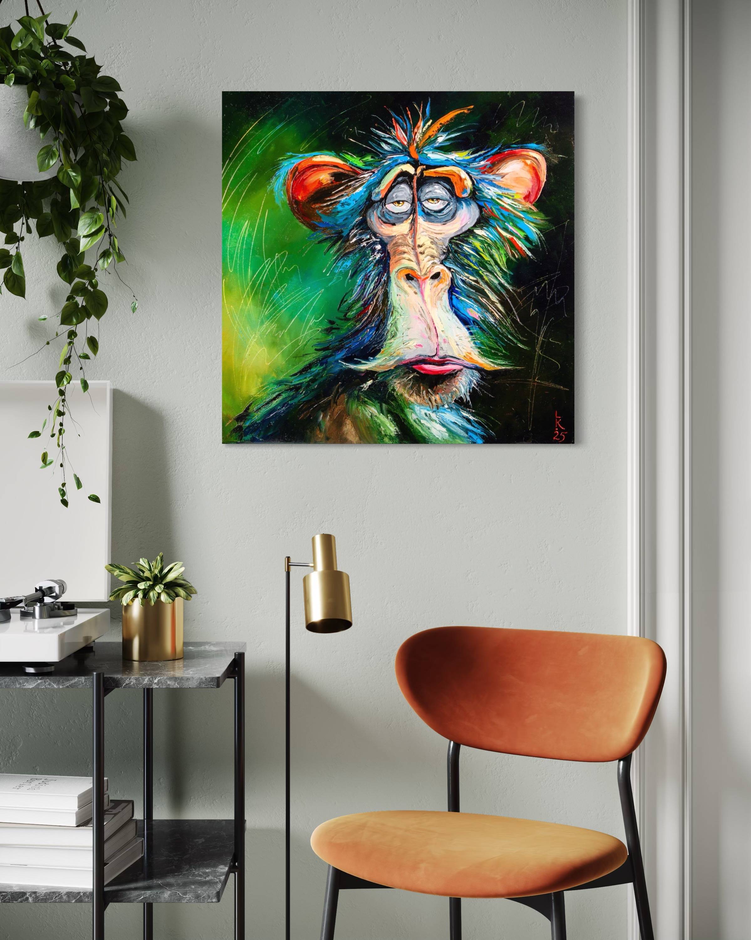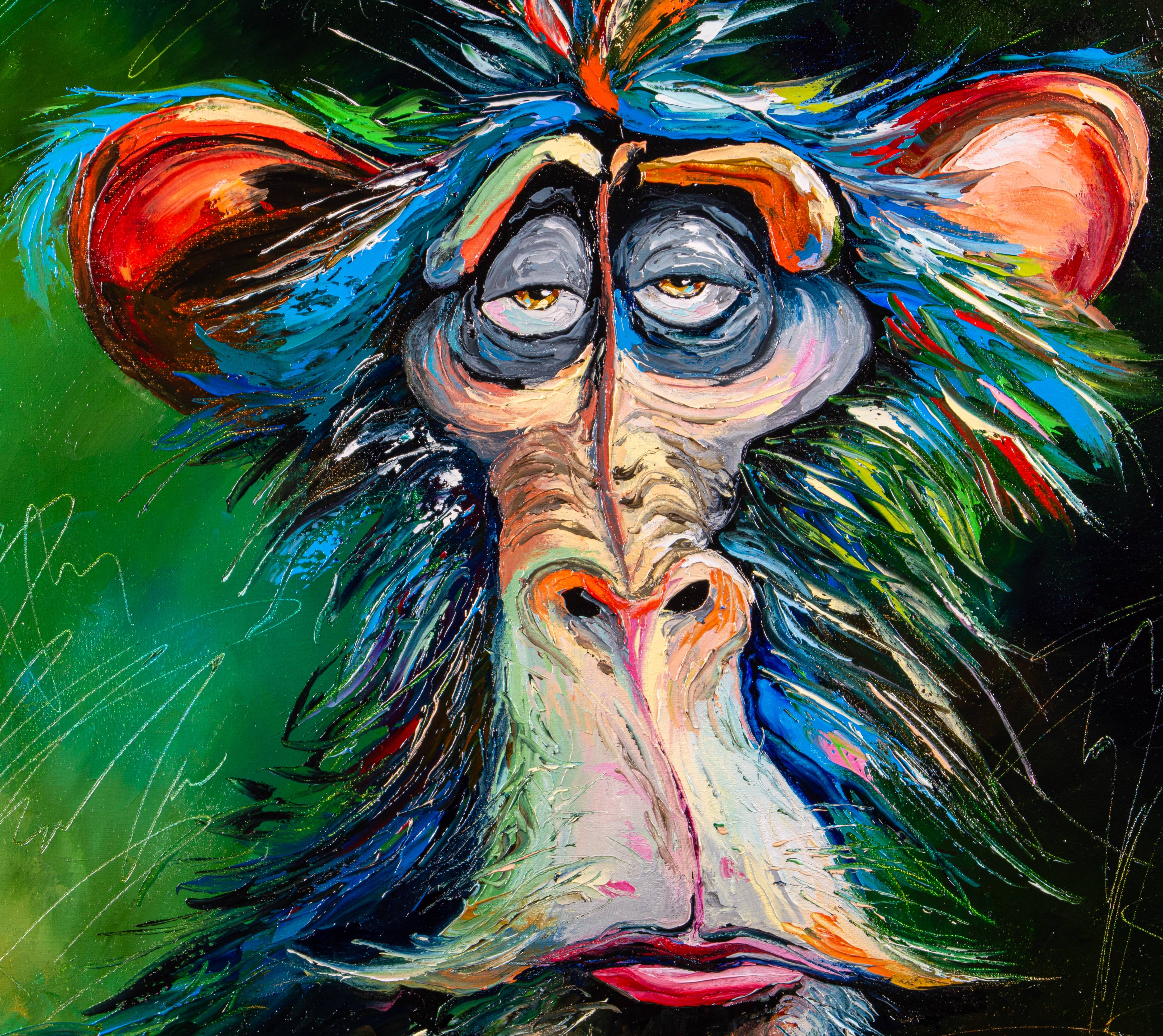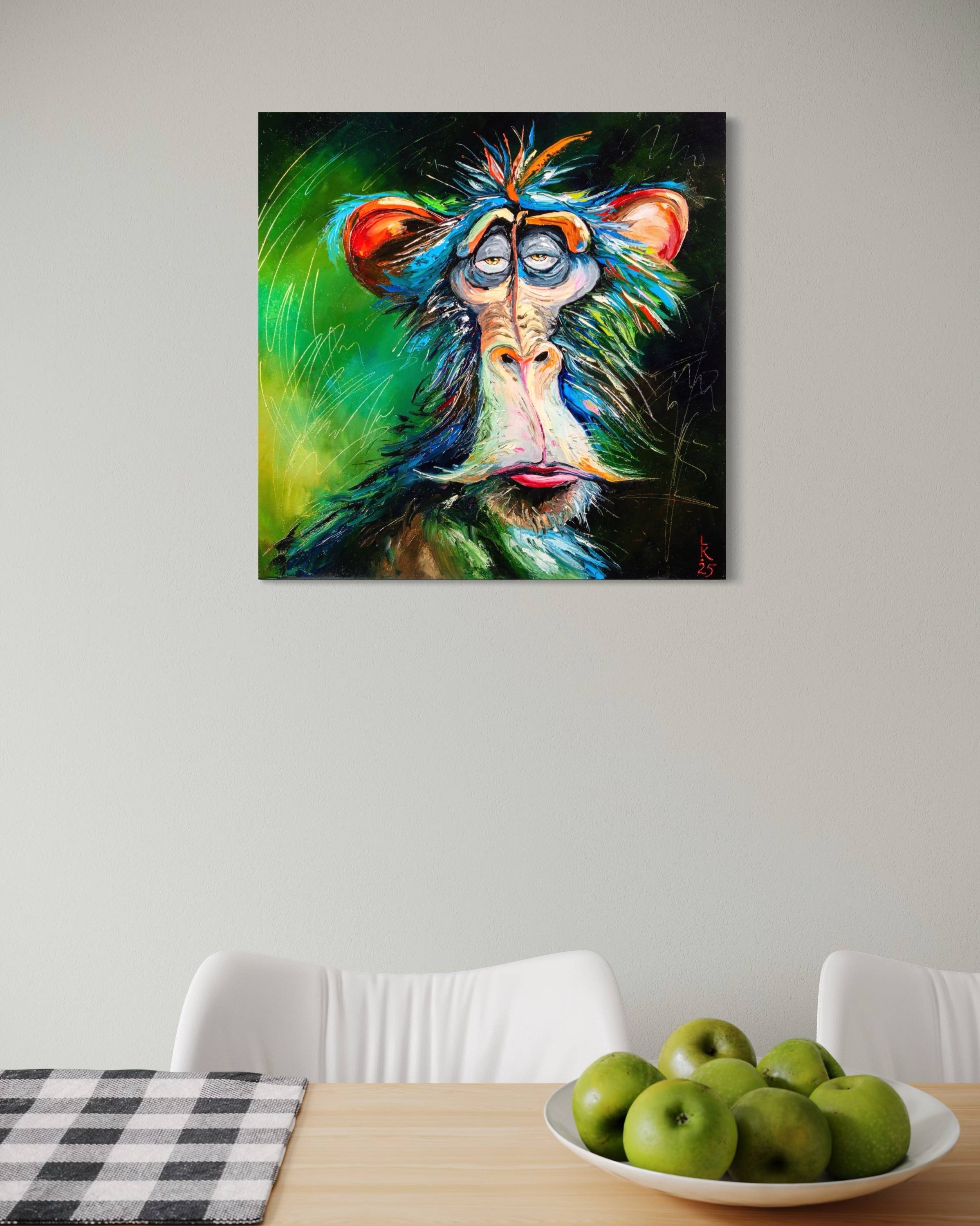 In this work, I wanted to capture not just the vivid, slightly comical appearance of a mandrill, but his inner state — a quiet dream, a hint of melancholy, and a touch of wisdom.
