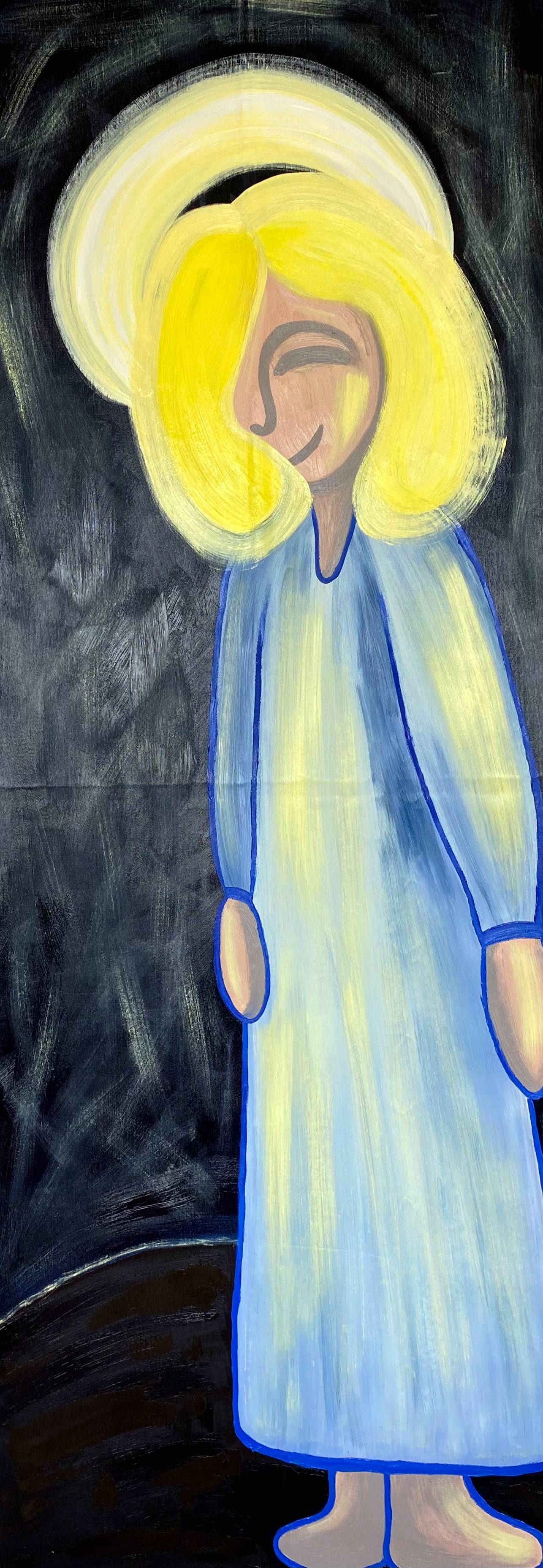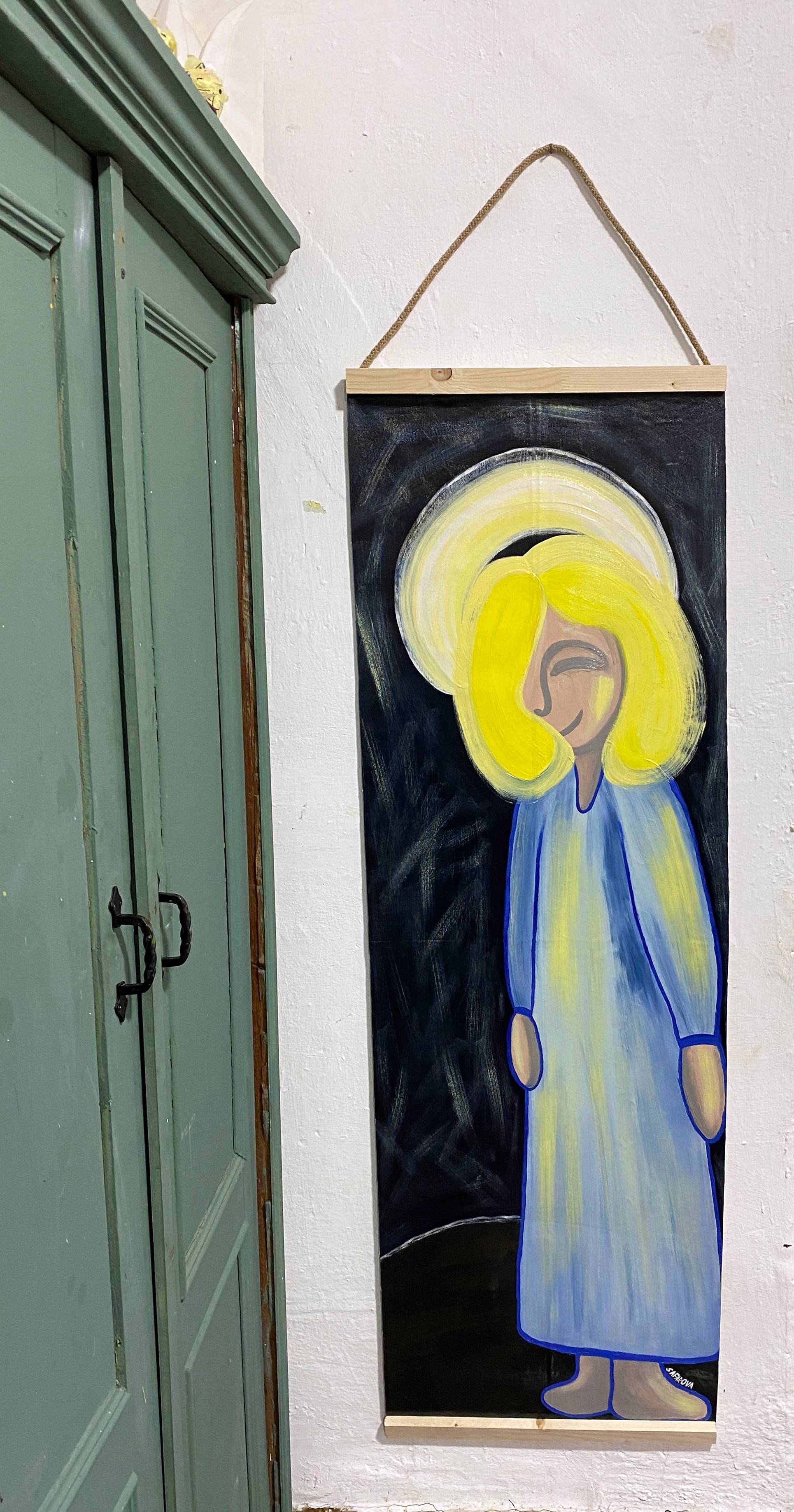 On the painting, I depicted the image of the Moon God, recreated based on the beliefs of our ancestors and my own sensations of the celestial body. I always had the impression that the Moon never appears to me clearly, it is always slightly out of focus, as if hiding from my gaze. This adds to its enigmatic and mysterious nature, which has always fascinated me.