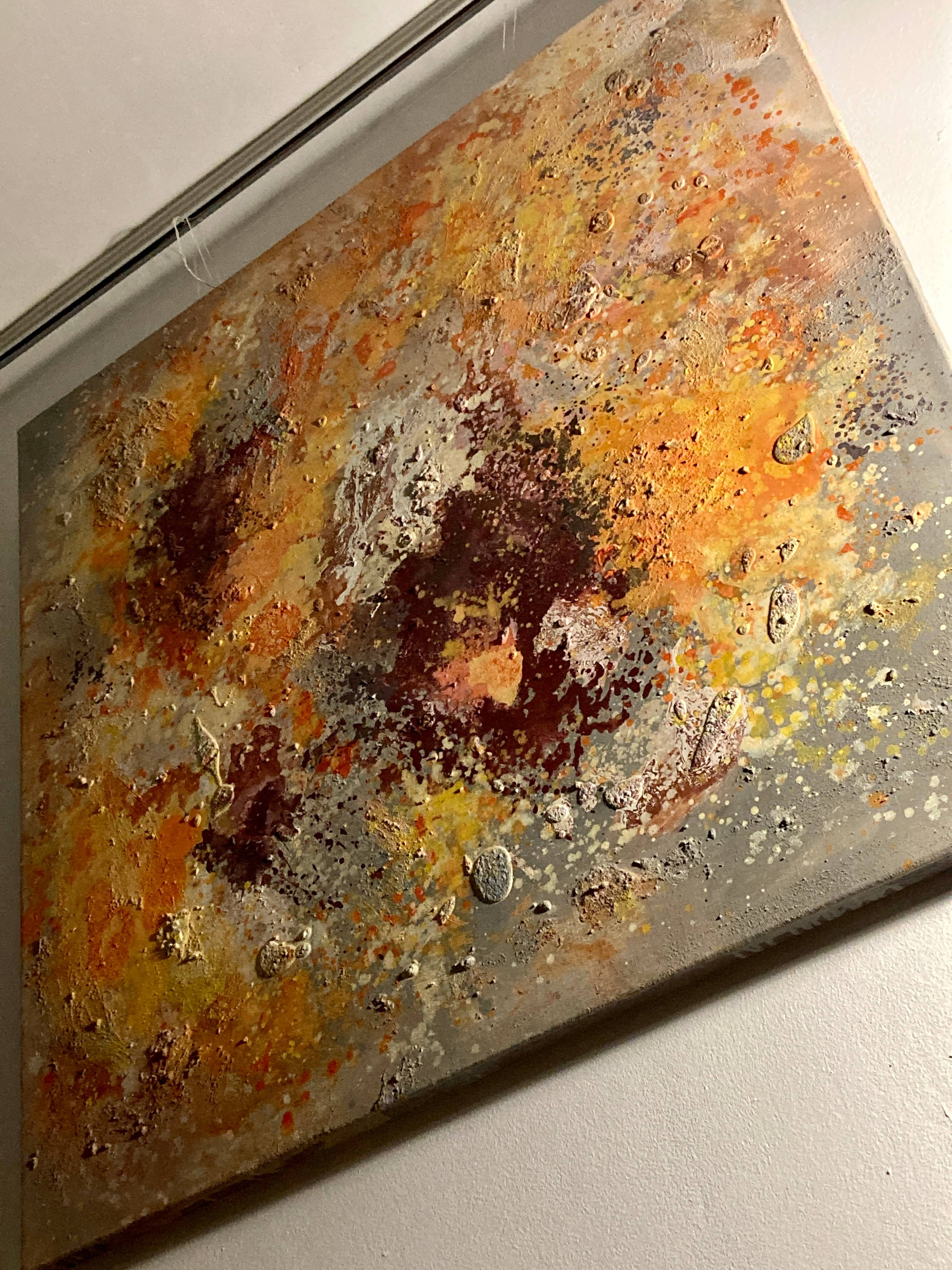 Autumn Textured took part in two Alena Kuznetsova's solo shows: Flux at Triptych gallery (2018) and Gamma at Ornament Art Space (20221). Its autumn color gamma is at its fullest and brightest, warm and cold colours are balanced. Vividly seen texture, especially with the side lighting.